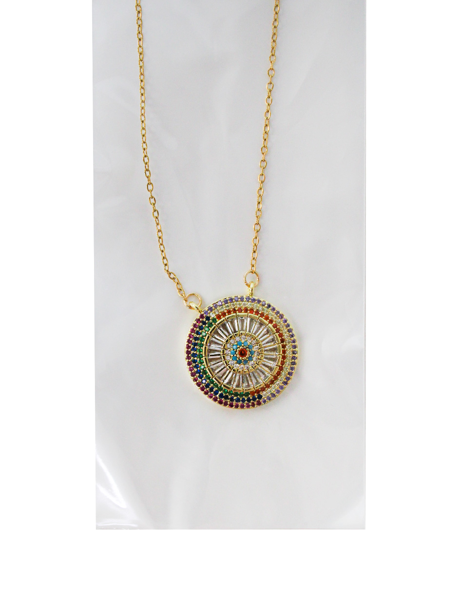 Collar con ojo turco con pedrería de colores de 2.5×2.5x50cm