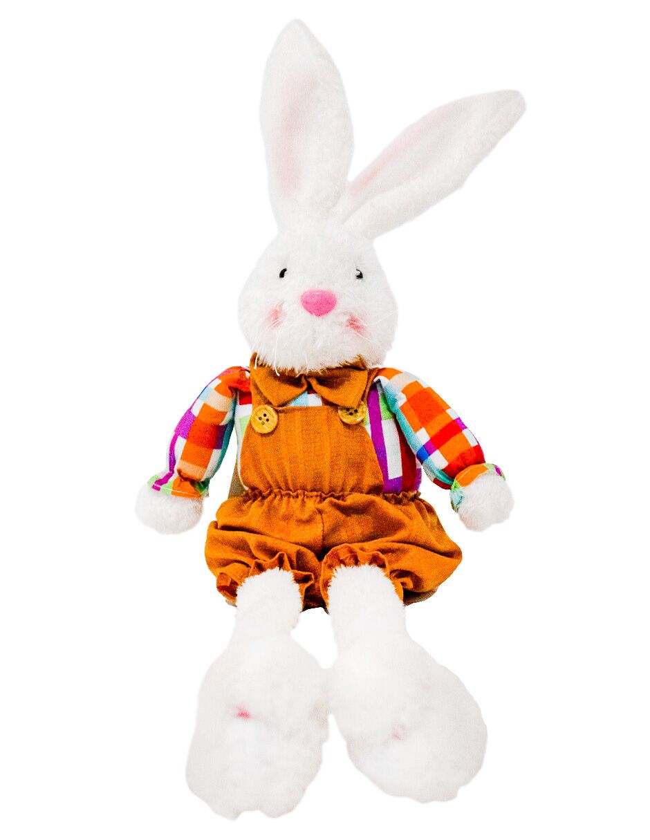 Conejo sentado con overol naranja y camisa a cuadros de 7x15x56cm