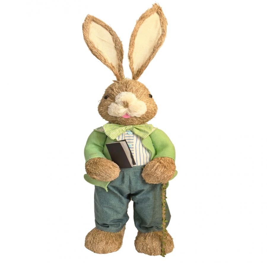 También transmite una vitalidad única a través de su acabado texturizado que captura la esencia de la naturaleza. Su apariencia refinada con un saco verde lima y una pajarita a juego invita a la admiración constante en cada momento del día. Funciona perfectamente en cualquier circunstancia decorativa de alto nivel durante la festividad de Pascua. De hecho, este elemento permite que tu rincón festivo resalte con mucha fuerza hoy mismo de forma imponente. Además, su estética simboliza la prosperidad. Representa la vitalidad de una decoración organizada con los más altos estándares.
