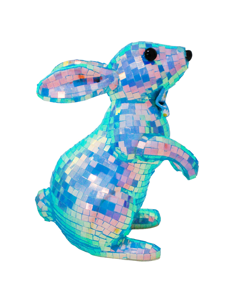 Fantasía y destellos con el Conejo Azul Iridiscente Estilo Disco Ball