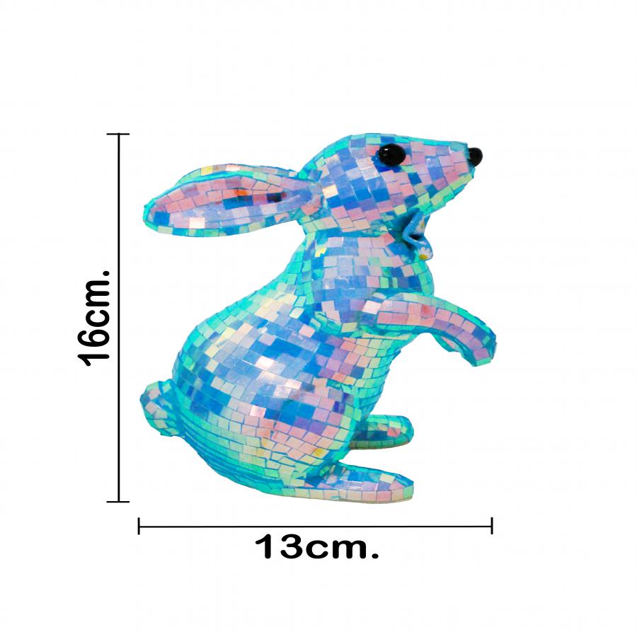 Este concepto decorativo transforma una silueta icónica en un escenario de luz camaleónica. Al elegir el Conejo Azul Iridiscente Estilo Disco Ball, inviertes en una pieza duradera. El producto combina materiales sintéticos con una imitación de mosaico de alta fidelidad. Por otro lado, el contraste entre la forma clásica y el efecto tornasolado ofrece un impacto visual muy equilibrado. Sin duda, será muy atractivo para tus invitados.