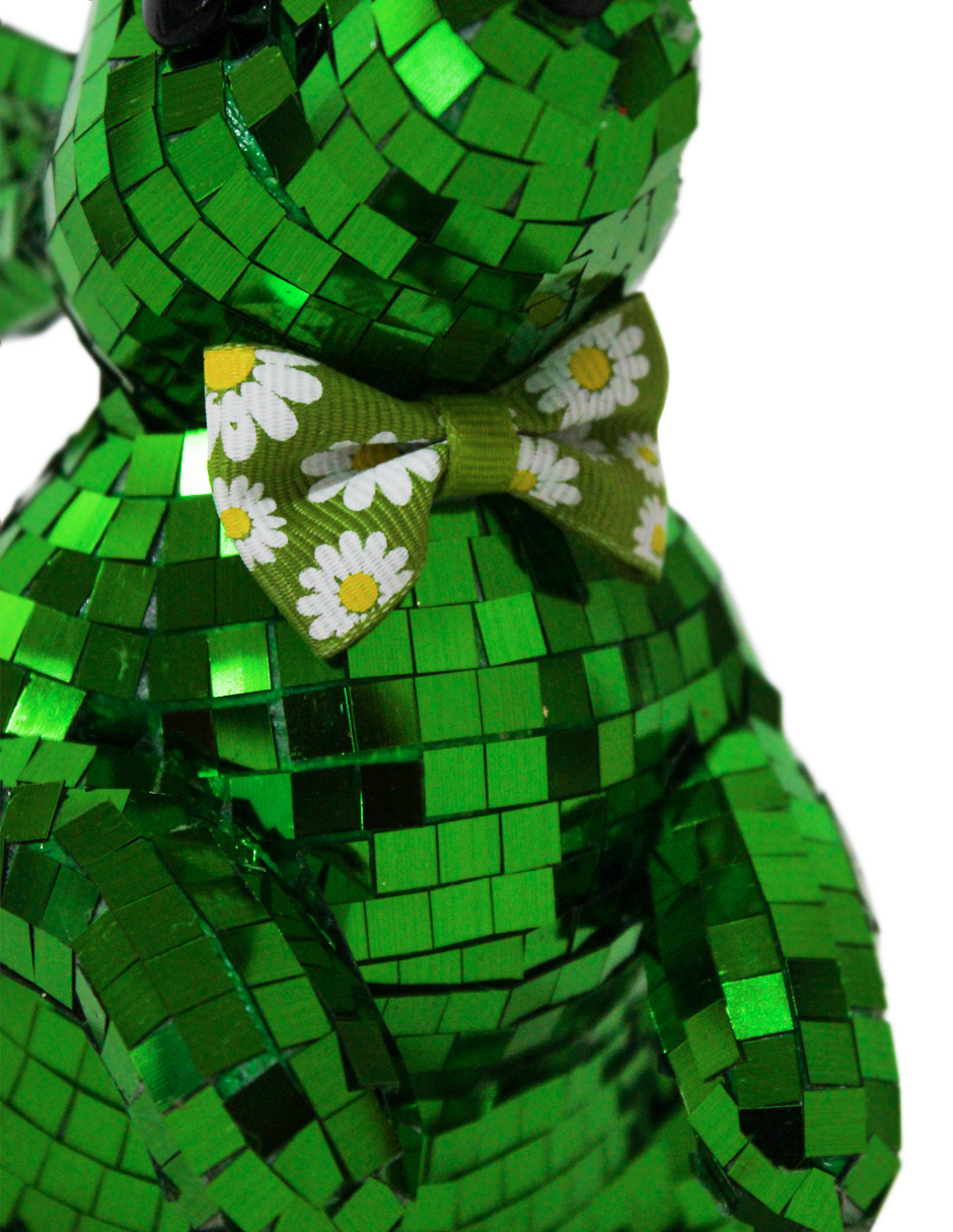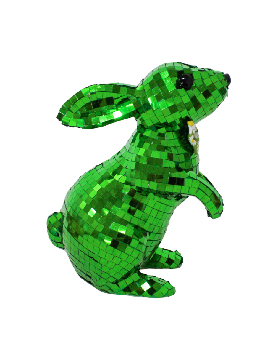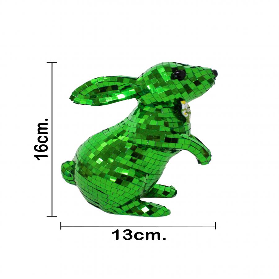 Este concepto decorativo transforma una silueta clásica en un escenario de intensidad visual. Al elegir el Conejo Verde Estilo Disco Ball, inviertes en una pieza duradera. El producto combina materiales sintéticos con una imitación de mosaico de alta gama. Por otro lado, el contraste entre la forma orgánica y los reflejos esmeralda ofrece un impacto visual muy equilibrado. Sin duda, será muy atractivo para tus invitados.