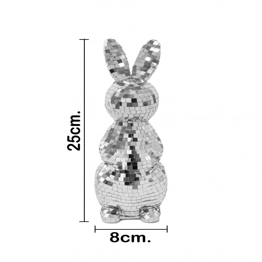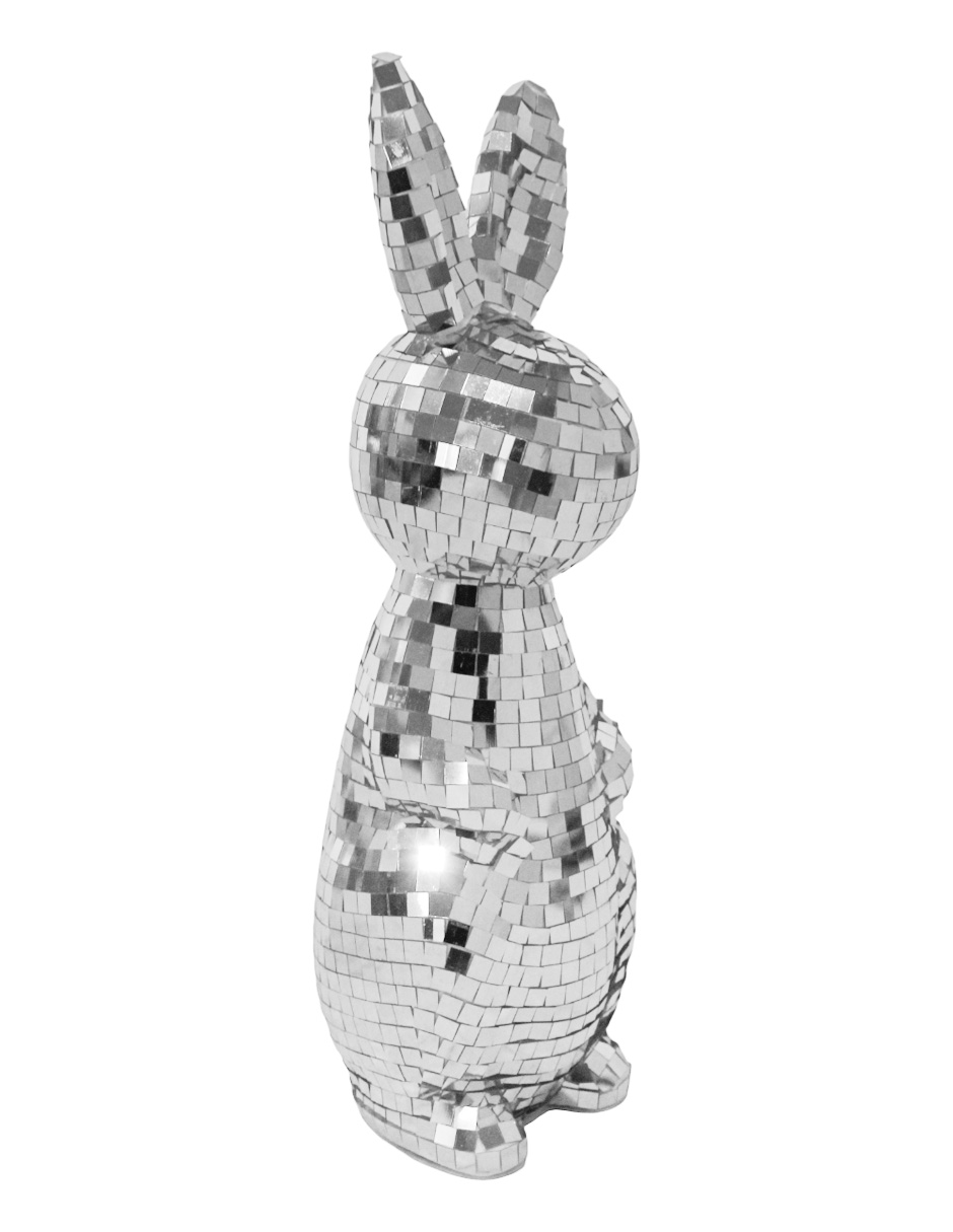 Respecto a su uso, se recomienda colocar el Conejo de Pie Disco Ball Plateado en puntos donde reciba luz directa (natural o LED) para potenciar su brillo frío y elegante. Su material suministra la protección necesaria para ser una pieza duradera y de fácil manejo. Al ser un diseño tipo “disco ball” plateado, resulta perfecto para crear ambientes limpios, brillantes y llenos de estilo.