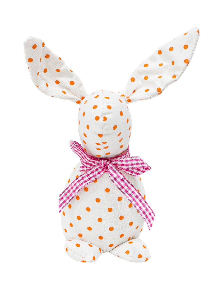 Conejo de tela blanca con puntos naranjas y moño de 4.5×6.5x21cm