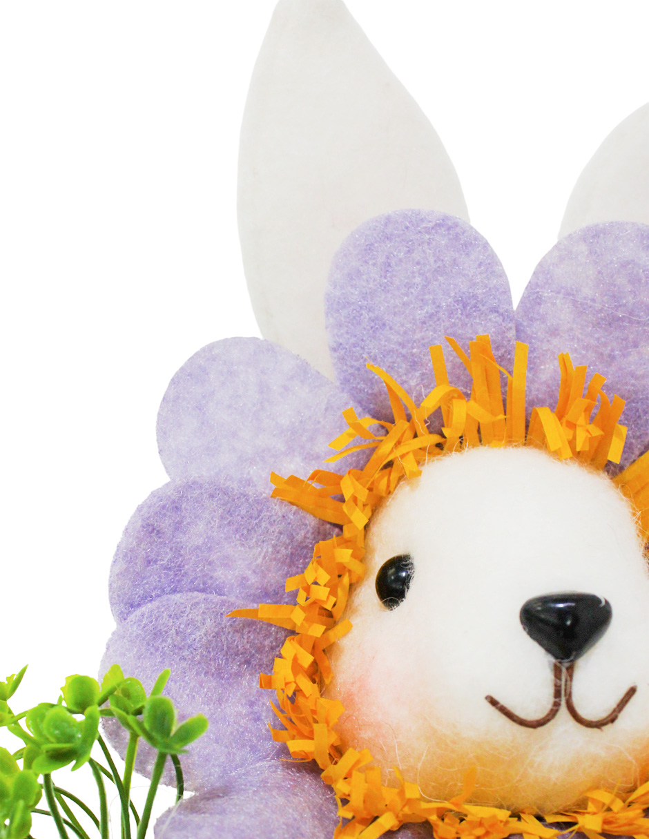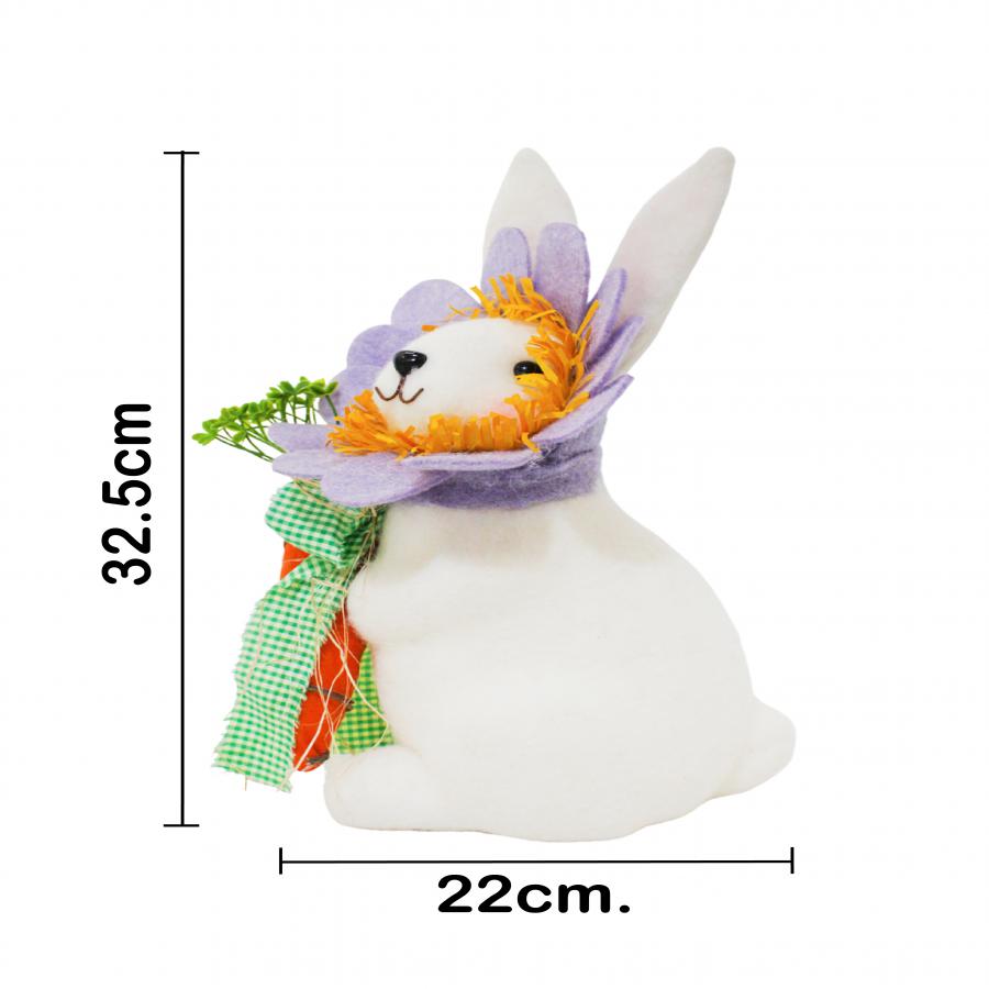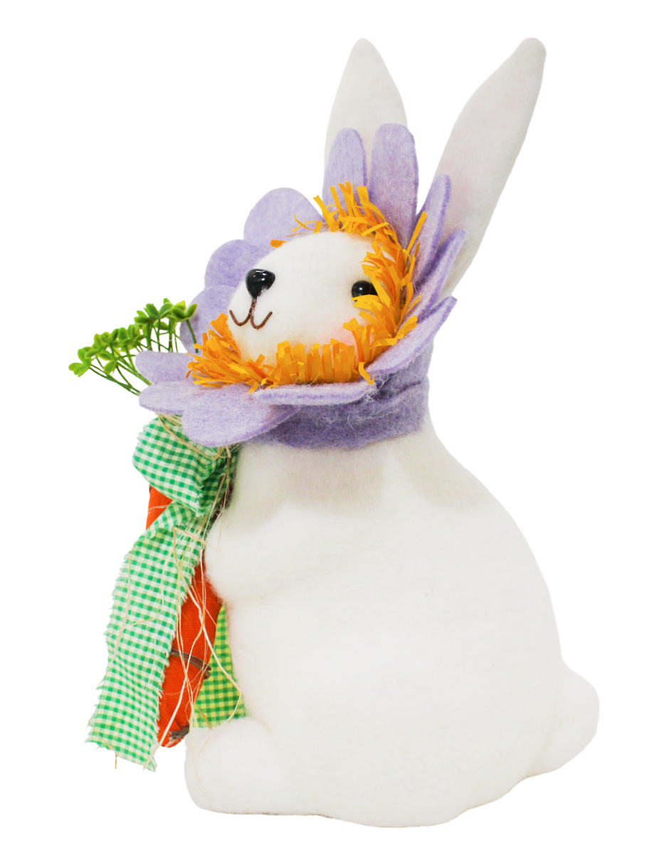 Este concepto decorativo transforma una figura clásica de Pascua en un escenario de creatividad visual. Al elegir el Conejo con Disfraz de Flor Lila y Zanahoria, inviertes en una pieza que combina texturas textiles suaves con detalles en relieve que aportan profundidad. El contraste entre el tono lila de los pétalos y el naranja vibrante de la zanahoria ofrece un impacto visual muy equilibrado y atractivo para tus invitados.