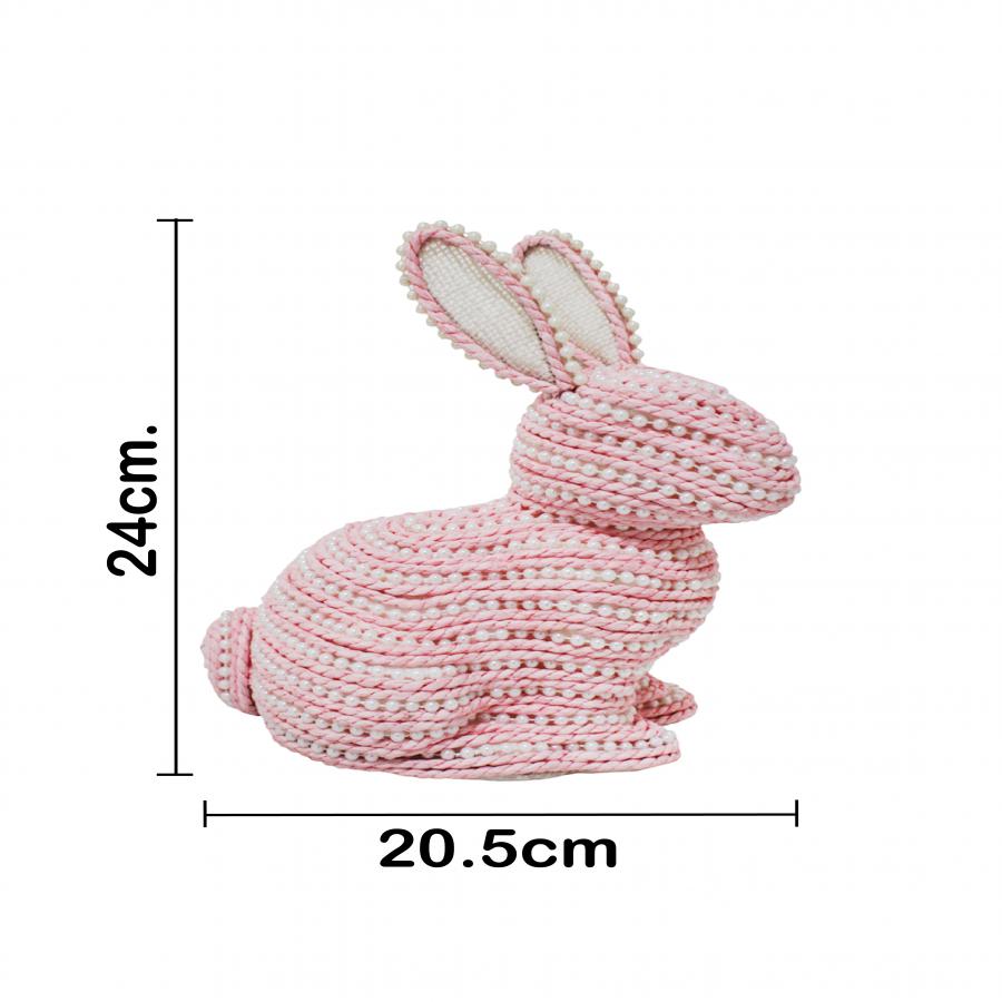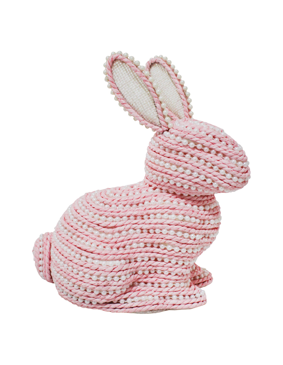 Este concepto decorativo transforma una silueta tradicional en un escenario de relieve visual. Al elegir el Conejo Rosa con Perlas, inviertes en una pieza que combina la calidez de la cuerda trenzada con el brillo nacarado de las perlas. El contraste entre el rosa pastel y el blanco de las aplicaciones ofrece un impacto visual muy equilibrado y atractivo para tus invitados.
