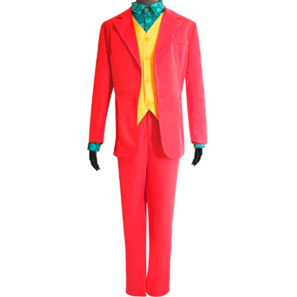 Conjunto de traje rojo con chaleco amarillo y camisa verde talla L