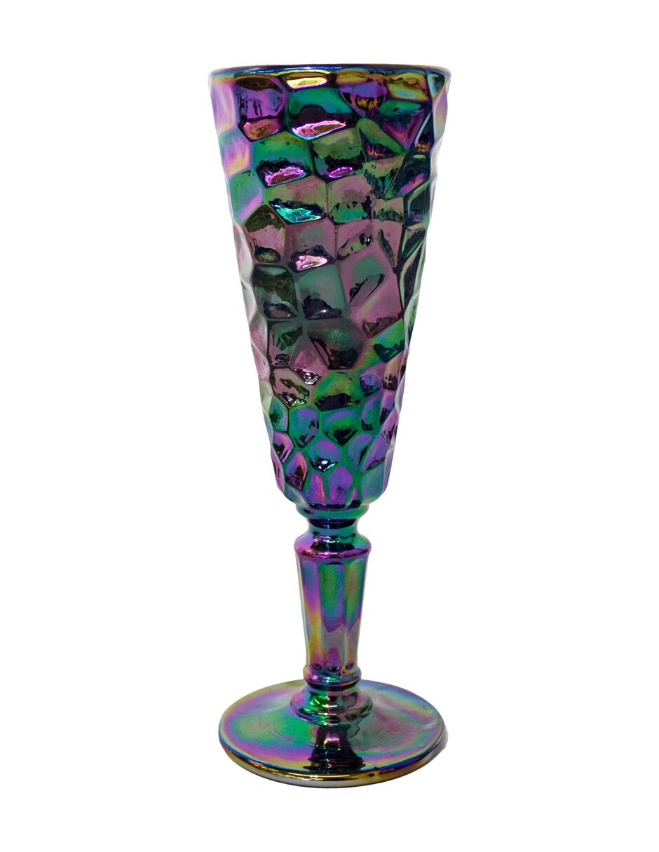 Copa de vidrio para champagne con un hermoso acabado iridiscente. Es ideal para brindar y añadir un toque de fantasía y glamour a tus celebraciones. Tiene una capacidad de 120ml.