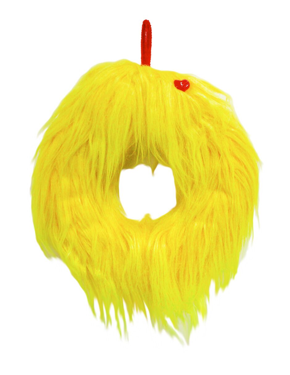 Aporta un toque de dulzura a tu hogar con esta festiva corona de peluche amarilla. Su corazón rojo te hará sentir la tranquilidad y el amor. Es ideal para colgar en puertas o el árbol, creando un ambiente lleno de calidez. Medidas: 10x10x2 cm.