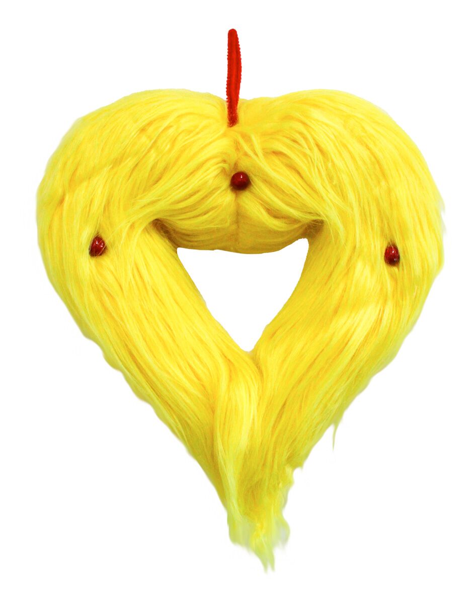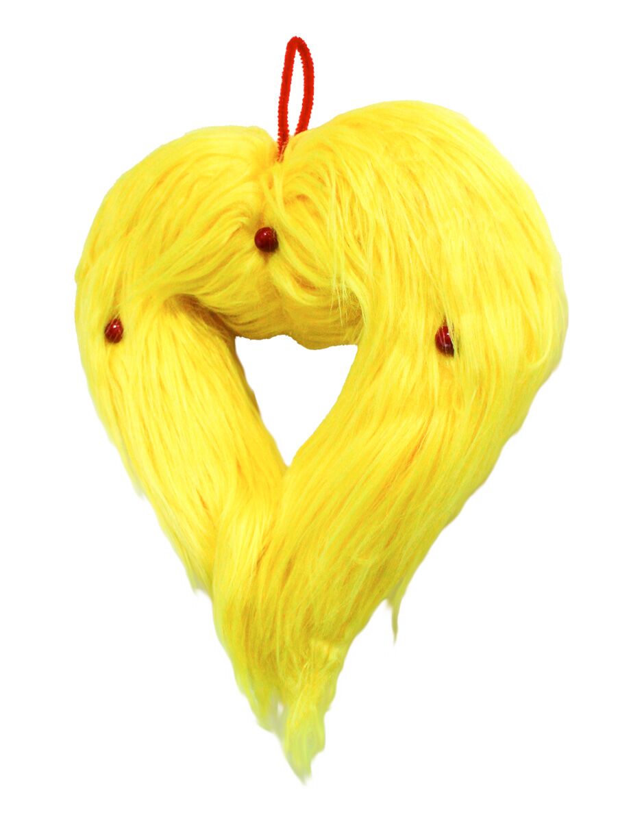 Aporta un toque de dulzura a tu hogar con esta festiva corona de peluche amarilla. Su diseño de corazón y mini esferas rojas te hará sentir la tranquilidad y la alegría. Ideal para decorar puertas o paredes, creando un ambiente acogedor. Medidas: 13x12x2 cm.