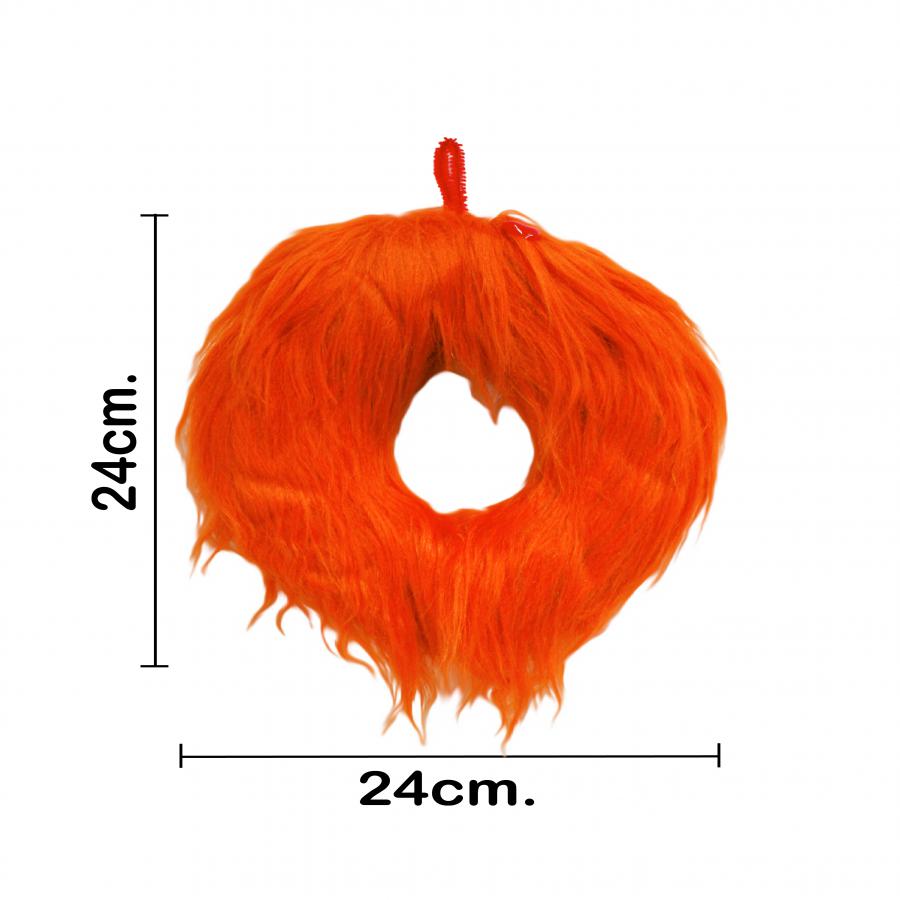 Aporta un toque de dulzura a tu hogar con esta festiva corona de peluche naranja. Su corazón rojo te hará sentir la tranquilidad y el amor. Es ideal para colgar en puertas o el árbol, creando un ambiente lleno de calidez. Medidas: 10x10x2 cm.