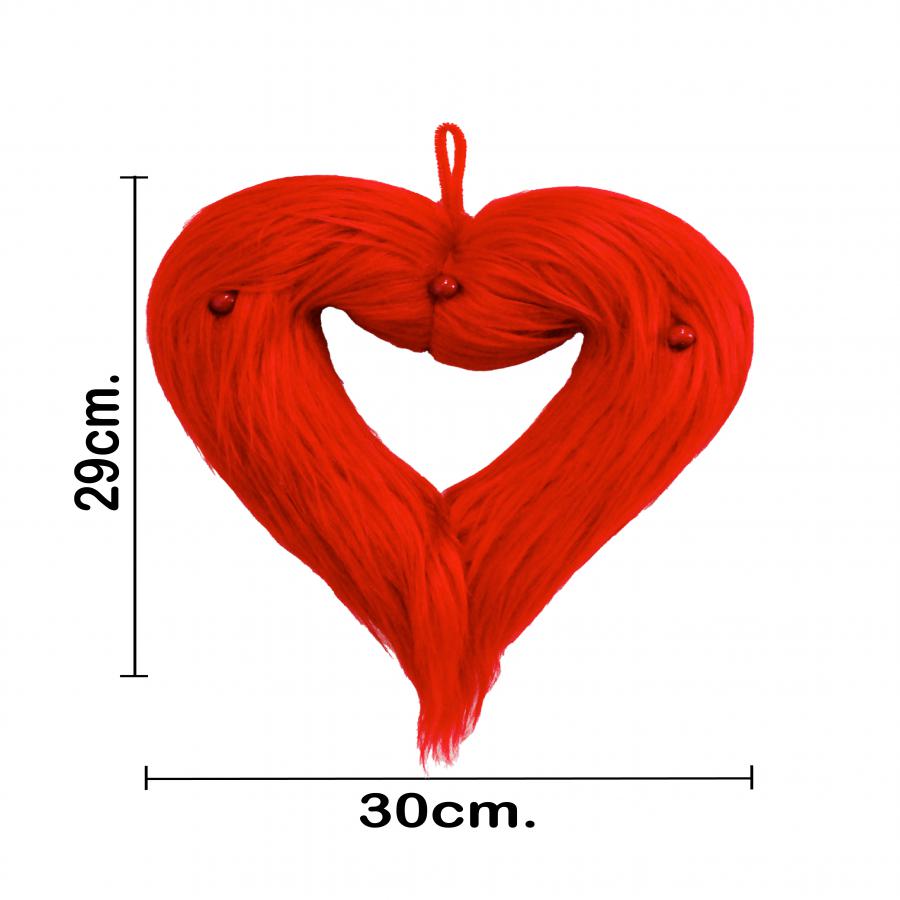 Aporta un toque de dulzura a tu hogar con esta festiva corona de peluche. Su diseño de corazón y mini esferas rojas te hará sentir la tranquilidad y la alegría. Ideal para decorar puertas o paredes, creando un ambiente acogedor. Medidas: 13x12x2 cm.