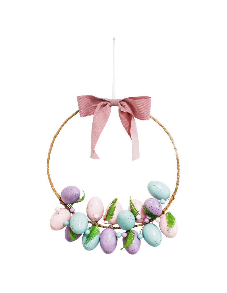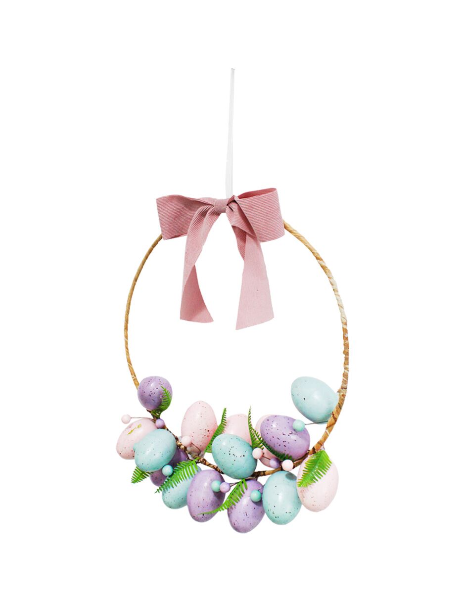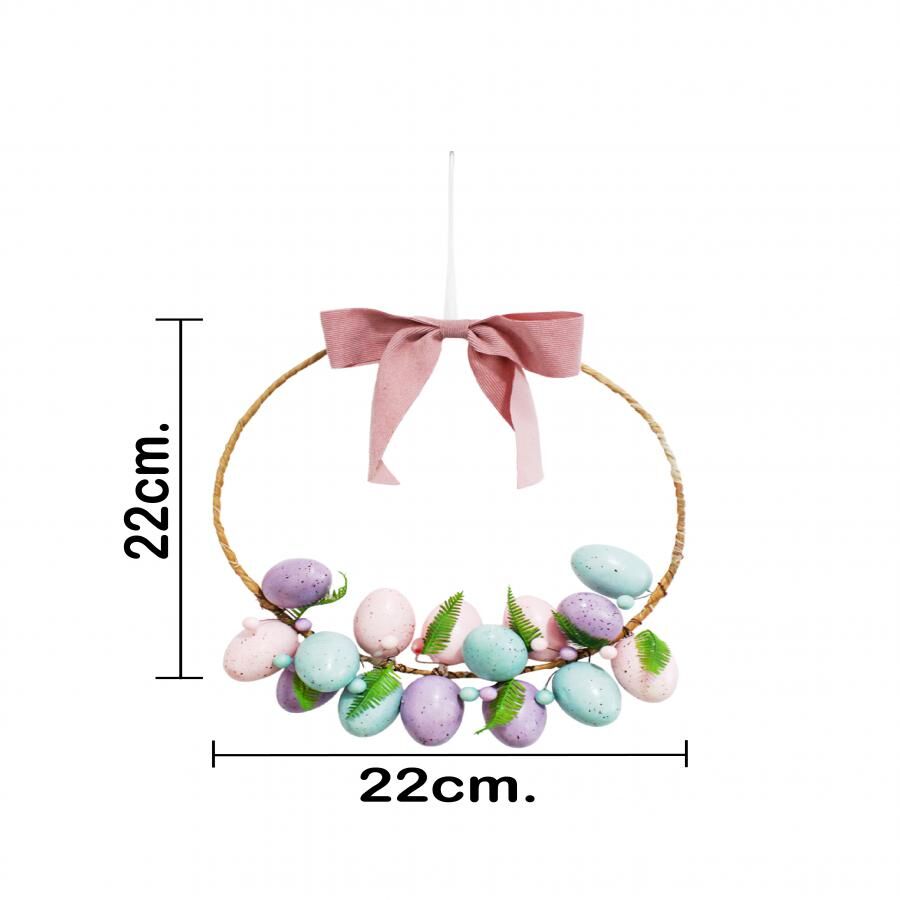 Corona de varas con huevos y moño de 22x6x22cm