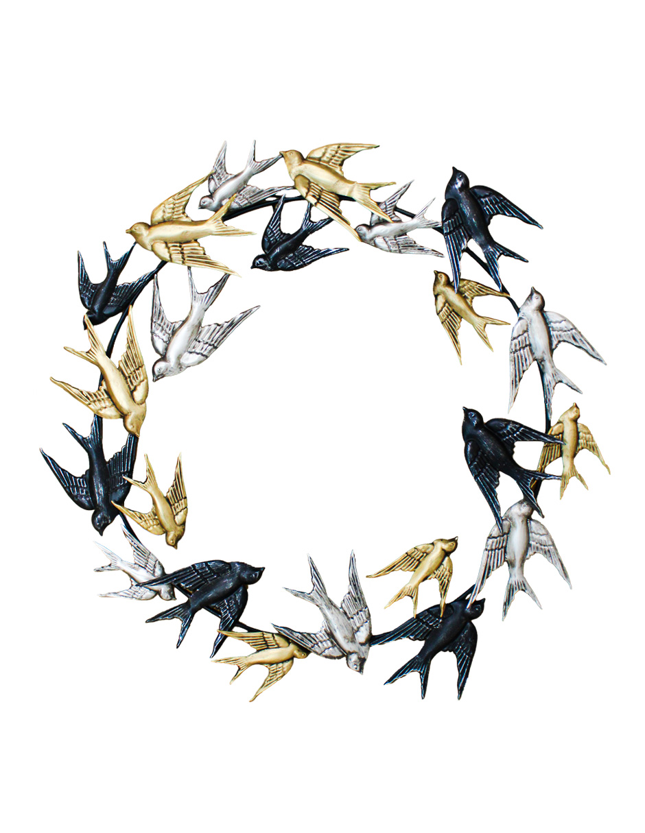 Corona metálica diseño gaviotas negras con dorado y plateado de 93.5×4.5x90cm