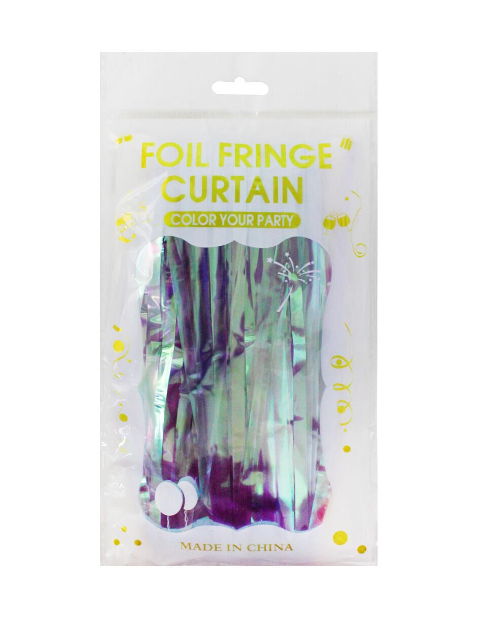 Cortina decorativa “Lluvia” en un profundo color morado metálico. Las tiras de papel de aluminio reflejan la luz, creando un ambiente lujoso y festivo. Ideal para cumpleaños o temáticas de fantasía. El material es papel de aluminio. Medidas: 100 x 200 x 0.1 cm.