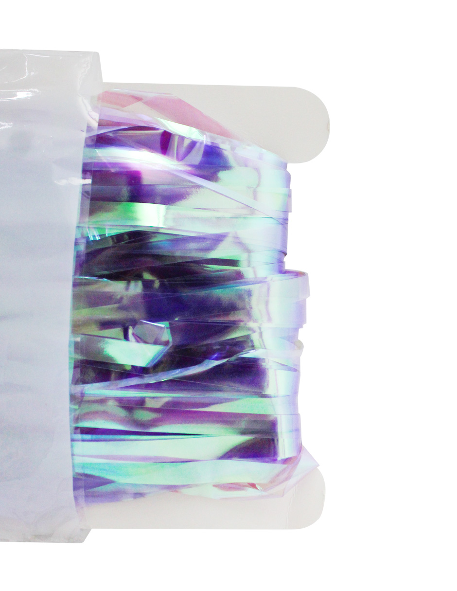Cortina decorativa “Lluvia” en un profundo color morado metálico. Las tiras de papel de aluminio reflejan la luz, creando un ambiente lujoso y festivo. Ideal para cumpleaños o temáticas de fantasía. El material es papel de aluminio. Medidas: 100 x 200 x 0.1 cm.