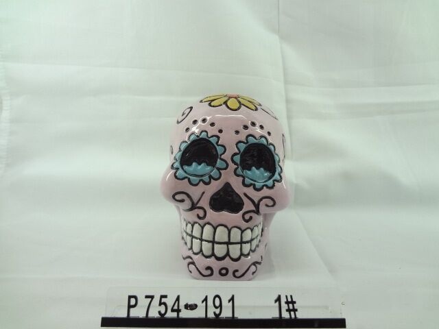Cráneo con diseño rosa de 9.5x12x12.5cm