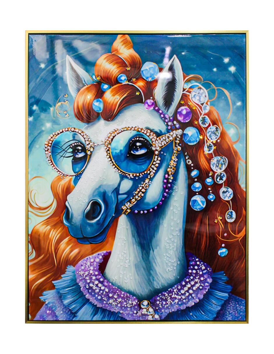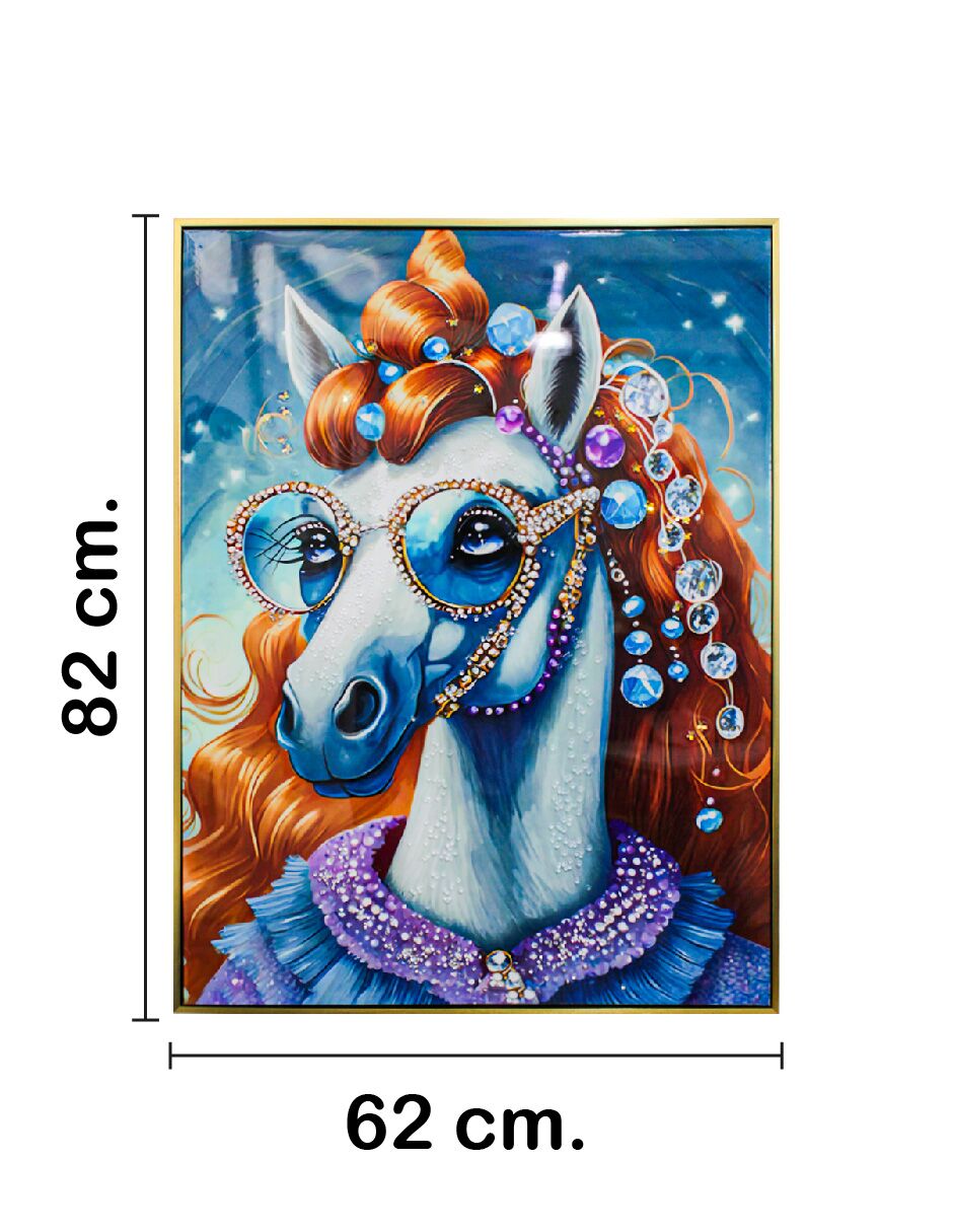 Cuadro con cabeza de caballo peluca lentes y pedreria de 62x82x4cm