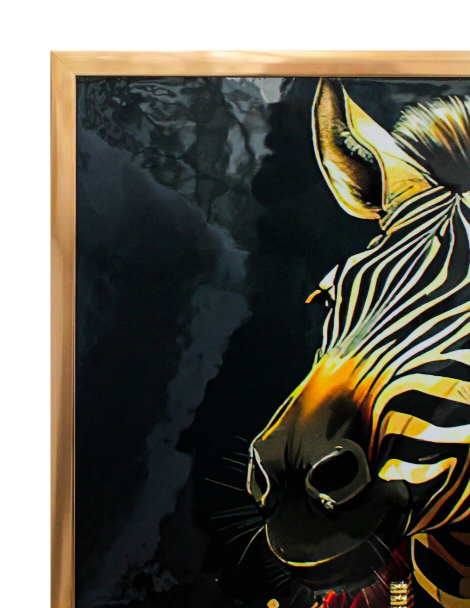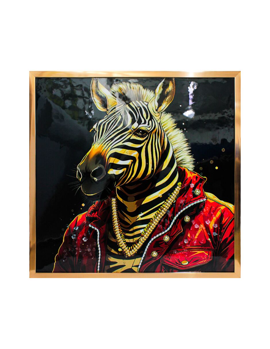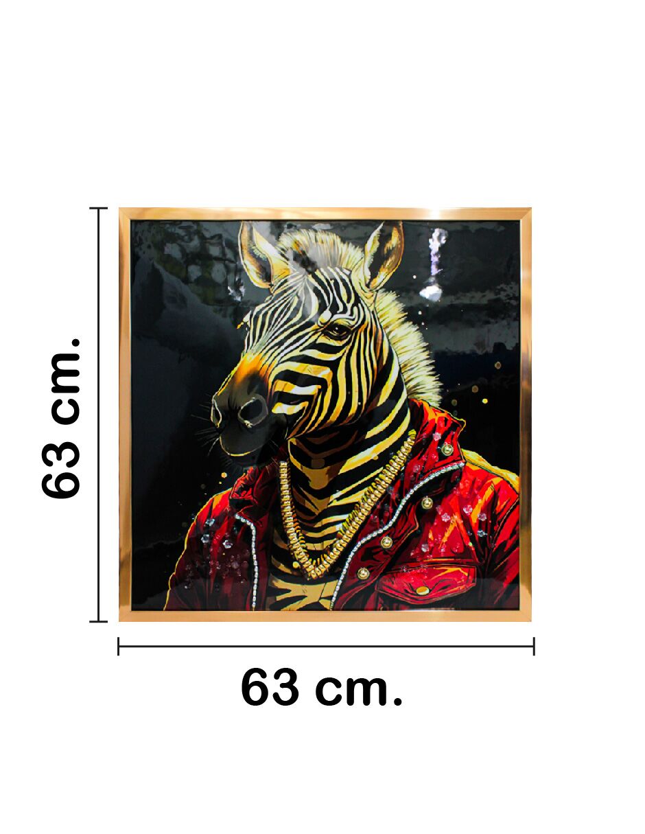 Cuadro diseño cebra con chamarra y collar con pedrería de 63x63x3.3cm