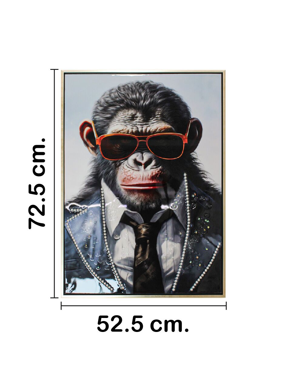 Cuadro con chimpancé con lentes de 52.5×72.5×2.8cm