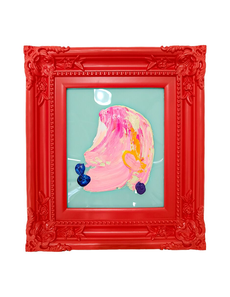Cuadro con pintura de color rosa y colores con marco rojo de 30x36cm