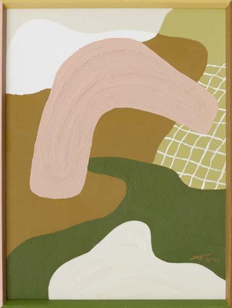 Cuadro de arte rosa verde amarillo y café de 60x80x2.4cm