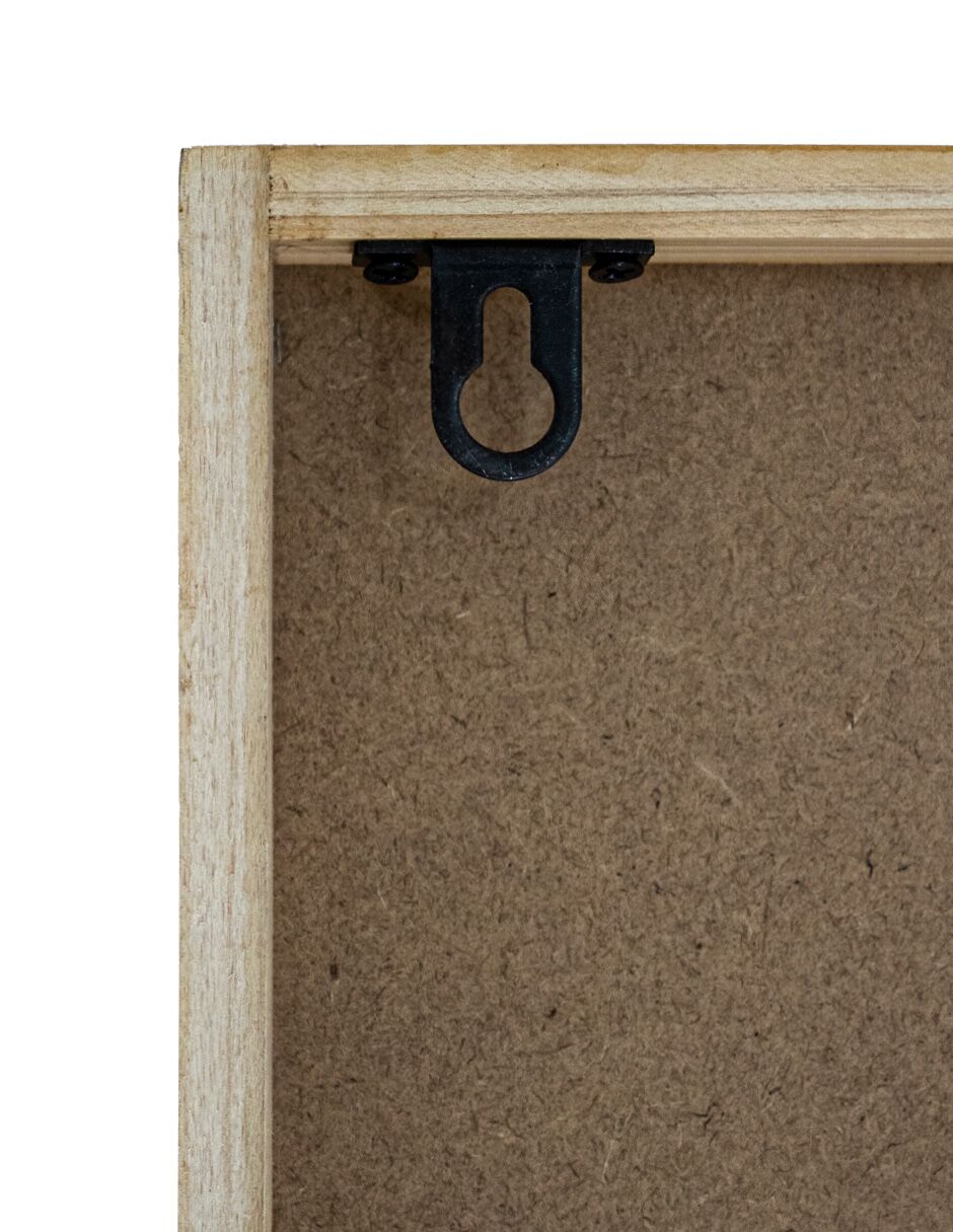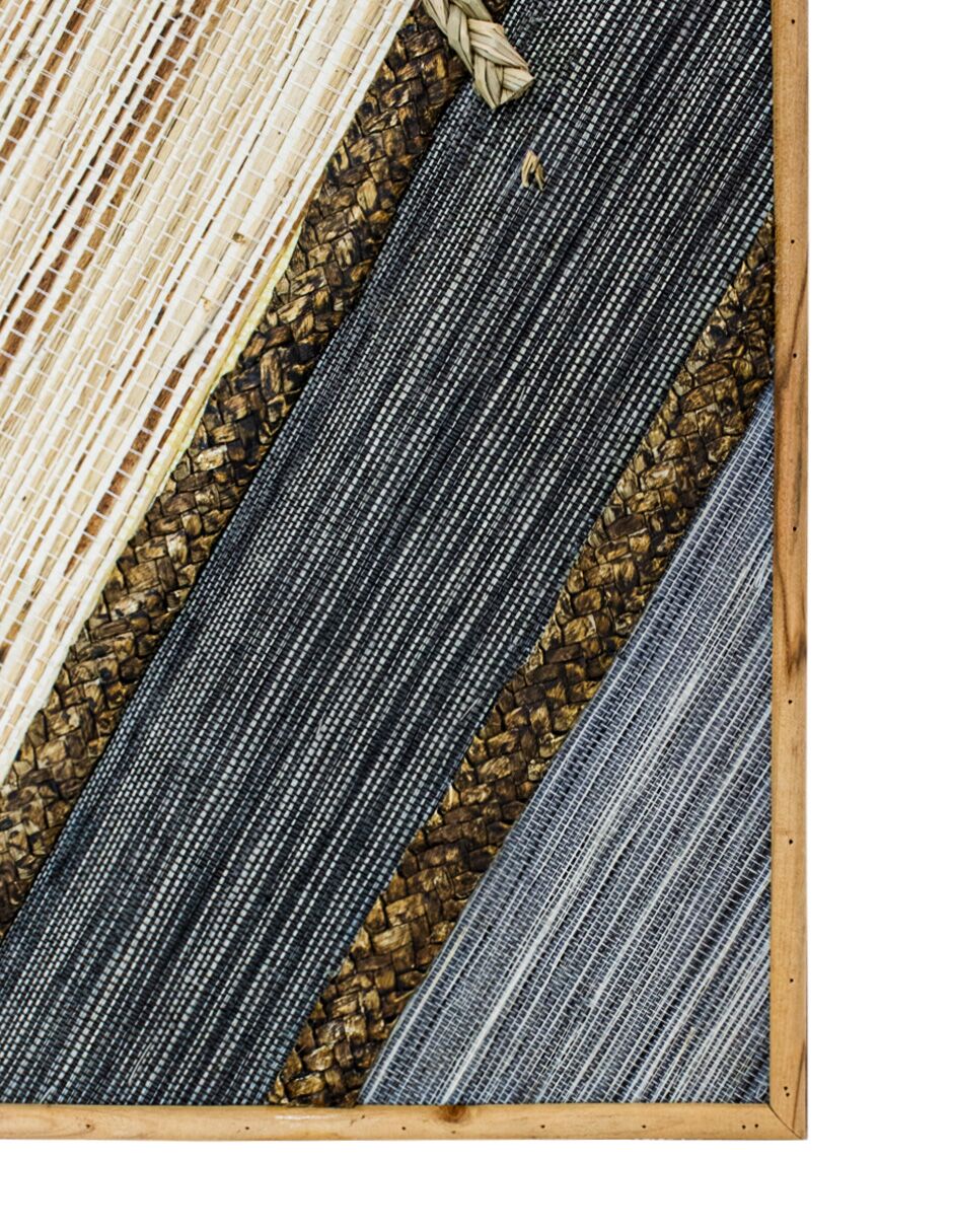 Un original cuadro de madera calada con un diseño de tejido natural en tonos azules. Esta pieza de arte funcional es ideal para quienes buscan un elemento decorativo que aporte un toque de textura y un estilo rústico moderno. Material: madera. Medidas: 30 x 3 x 80cm.