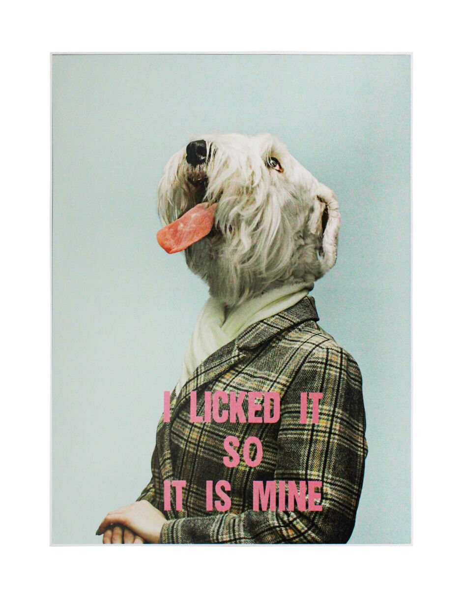 El arte que pone las reglas de la casa. Este audaz cuadro de 51x71x3 cm es la declaración definitiva de posesión. La figura de nuestro elegante perro, con su divertido mensaje, te recuerda que algunas cosas simplemente no se discuten. Con su estética antropomorfa y su toque de humor, esta pieza es un reflejo de una personalidad que valora el estilo y la diversión. Ideal para un espacio con carácter que no se toma demasiado en serio.