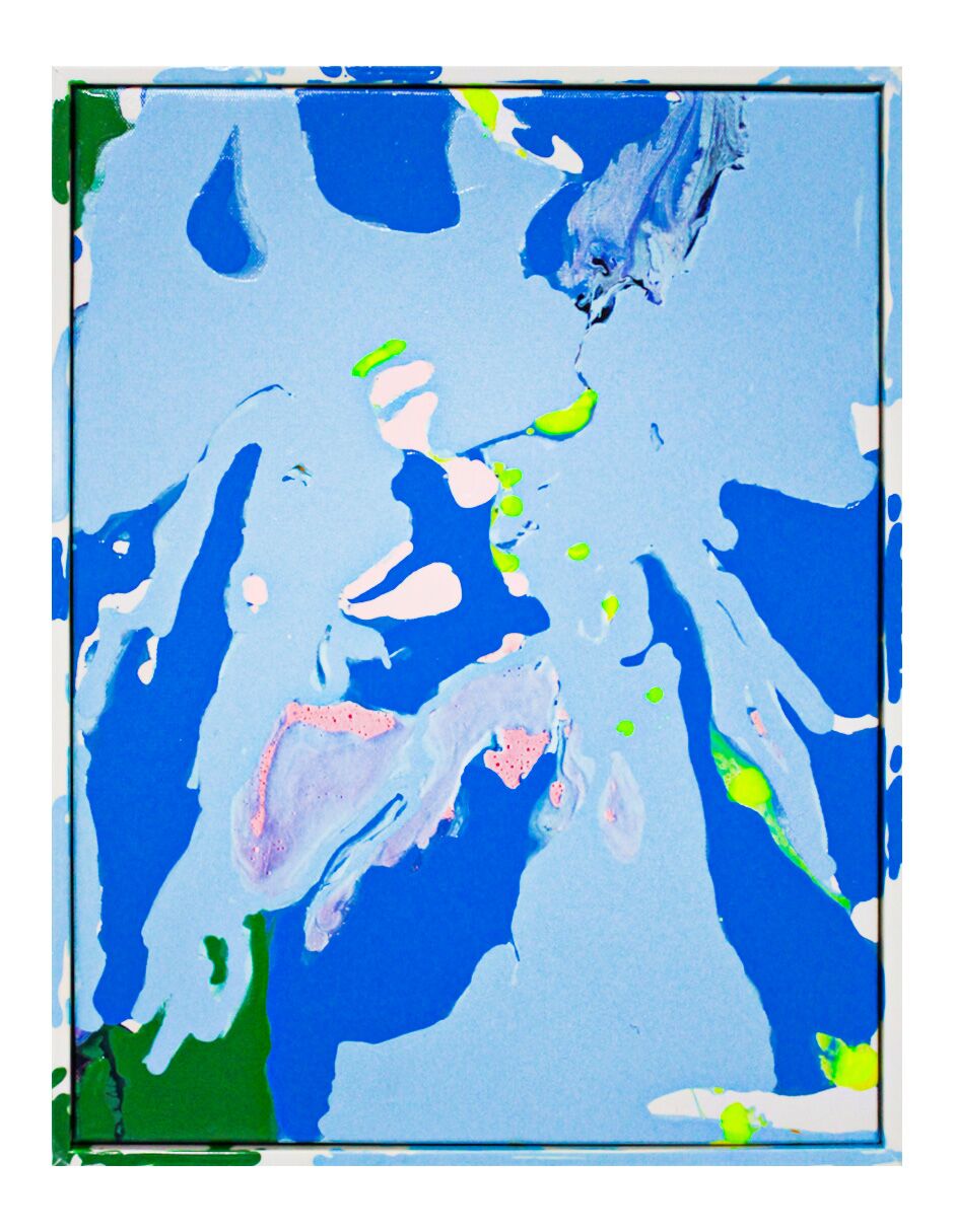 Cuadro diseño pintura azul con tonos fluorescentes de 30x40cm