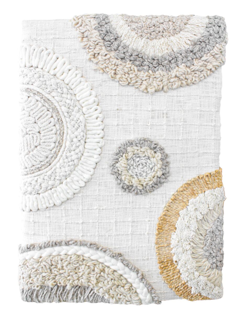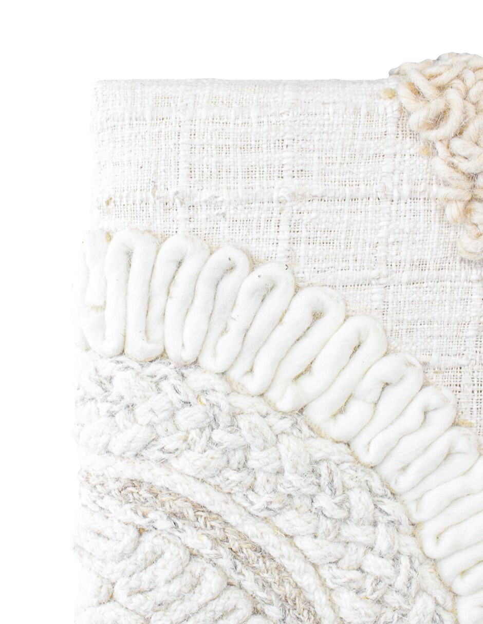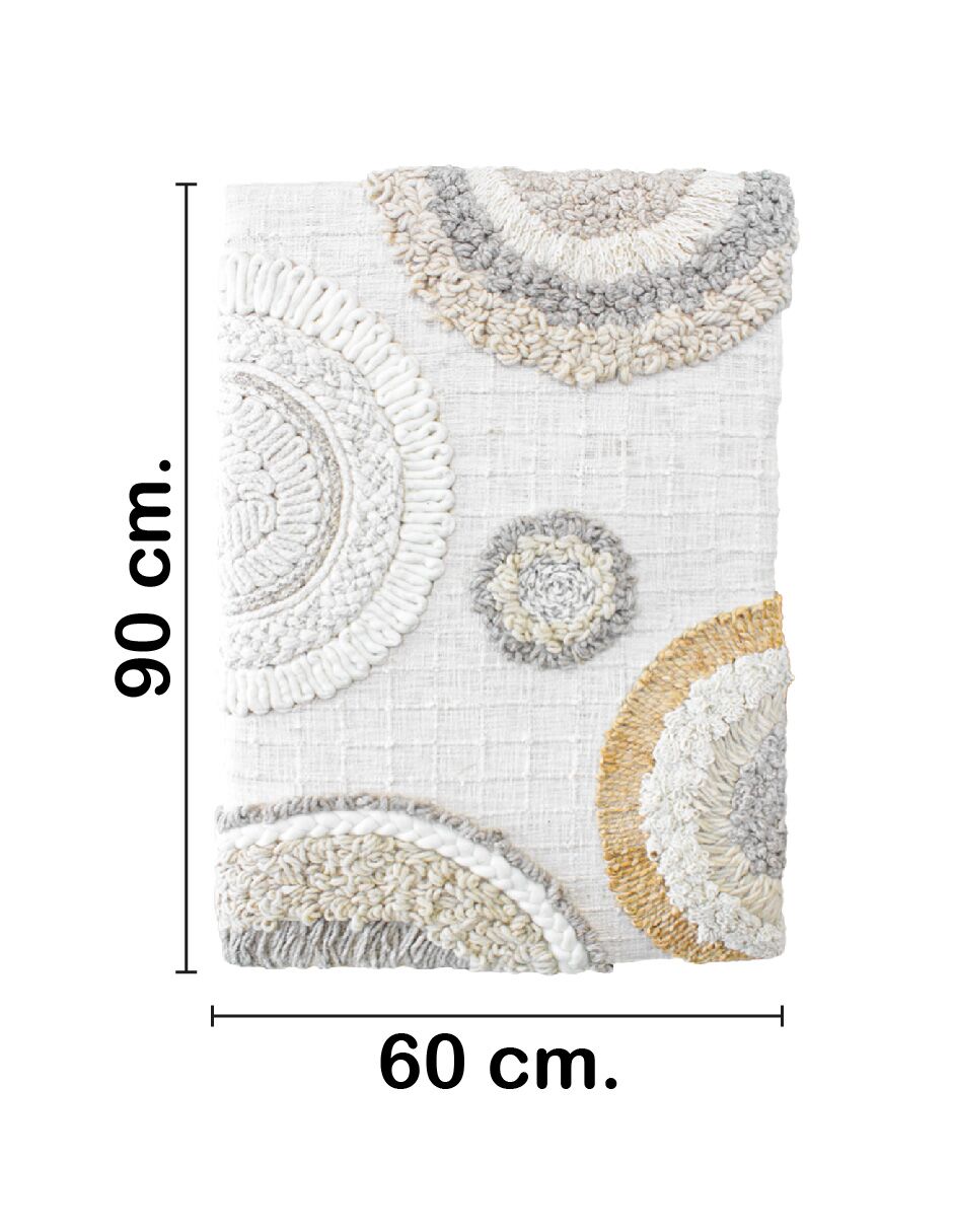 Cuadro de lana con círculos tejidos en tonos beige y grises de 60X90cm