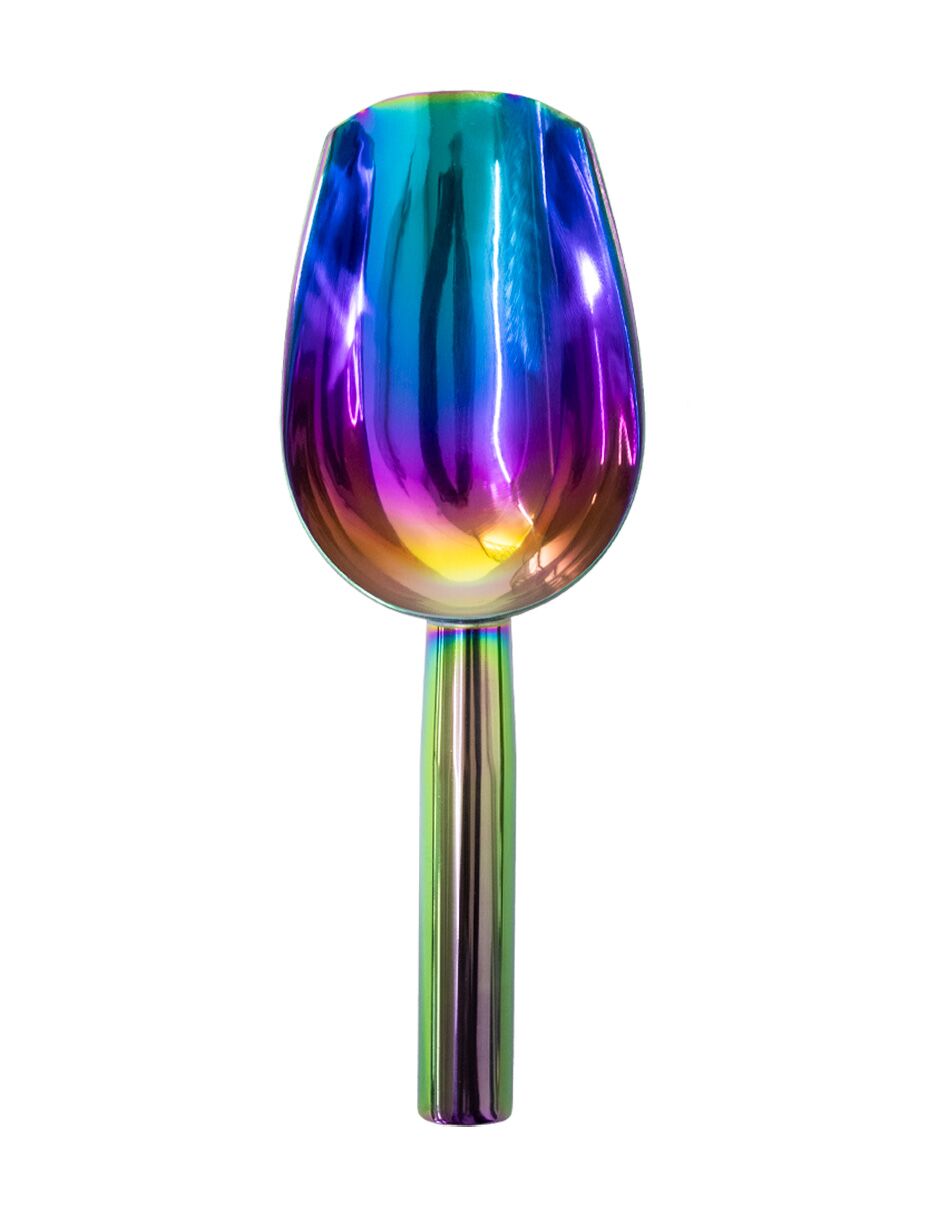 Cuchara larga ideal para remover cocteles o servir hielo con precisión. Fabricada en acero inoxidable de grado profesional y tratada con un atractivo acabado multicolor iridiscente para destacar en la barra. El material es acero. Medidas: 9 x 20.2 x 0.1 cm.