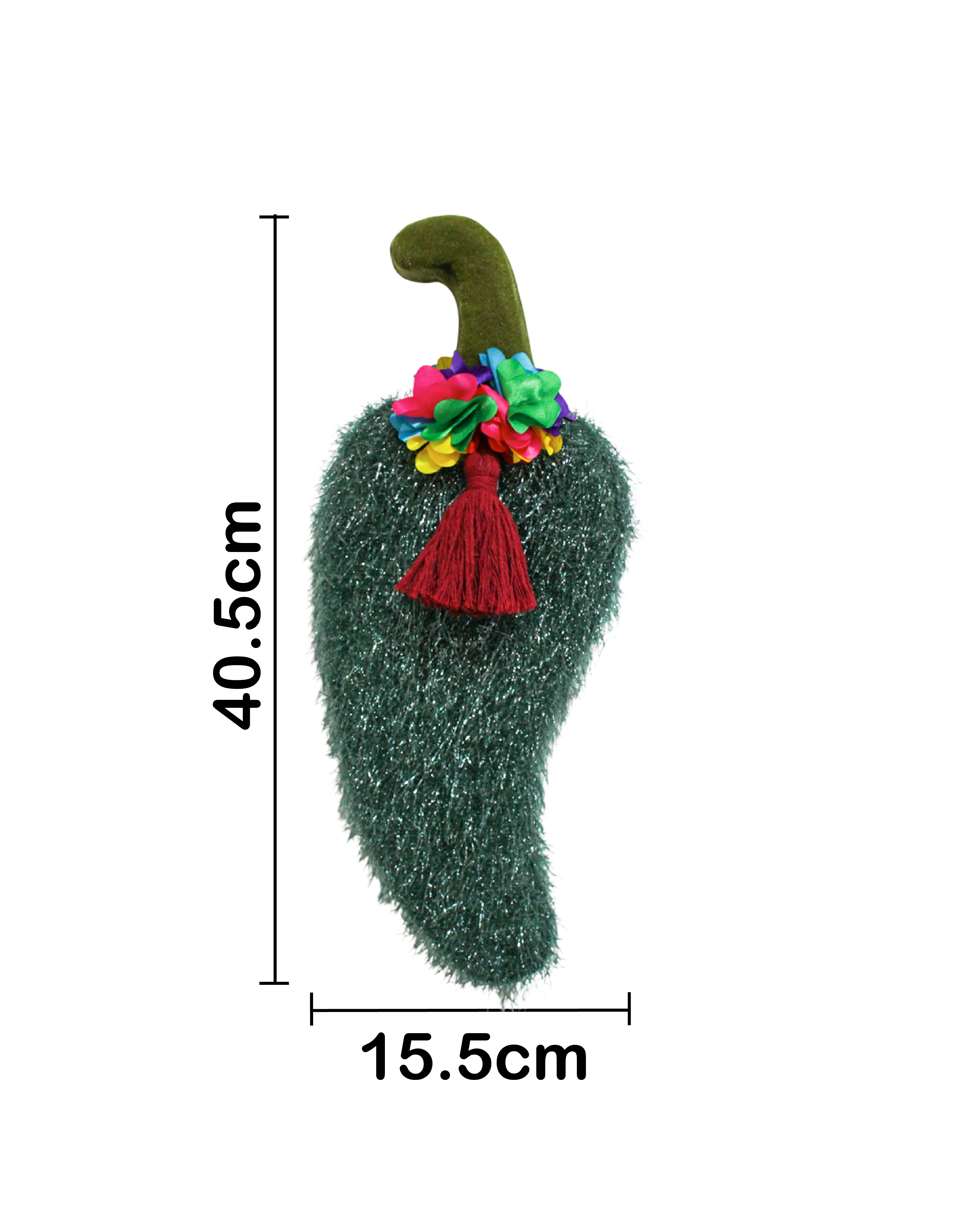Siente la pasión de México con esta decoración de chile verde. Su diseño con borlas y pompones de colores te hará sentir la vitalidad y la alegría. Medidas: 15x7x40 cm.