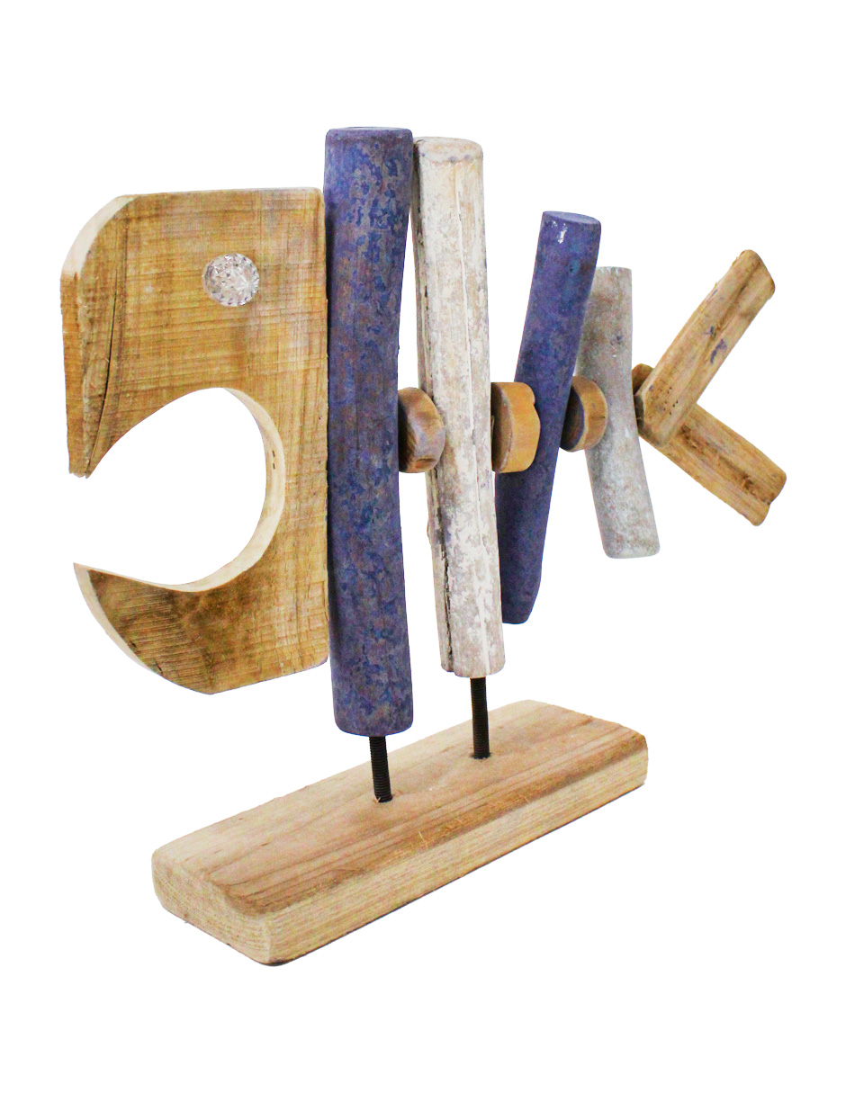 Decoración de pez con la boca curvada. Esta pieza es ideal para quienes buscan una decoración marinera y aventurera. Su diseño único evoca una sensación de frescura y tranquilidad, perfecta para crear un ambiente único y lleno de encanto. Material: metal.