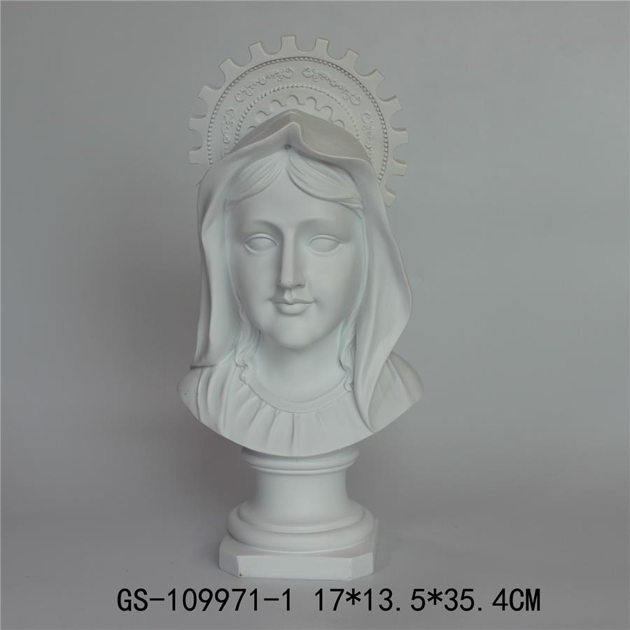 Rostro de Virgen blanca de poliresina en base de 17×13.5×35.4cm
