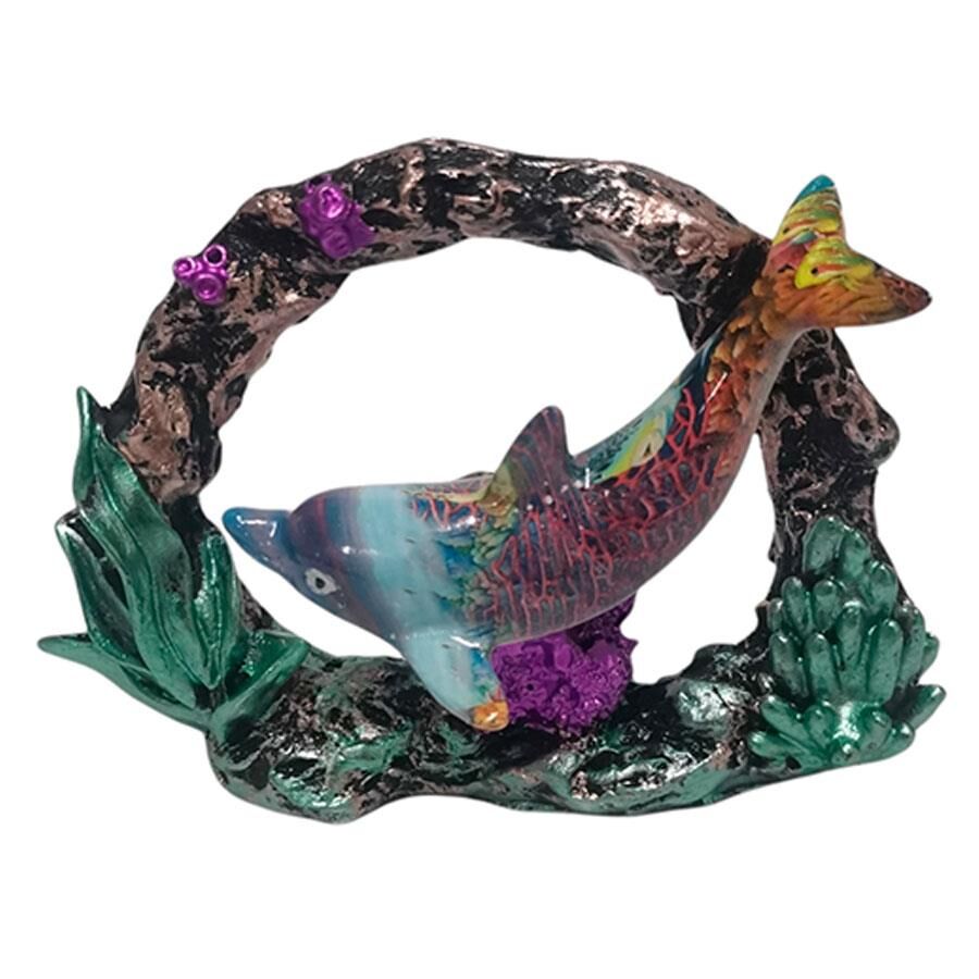 Delfín sobre arrecife de resina de 12.5cm