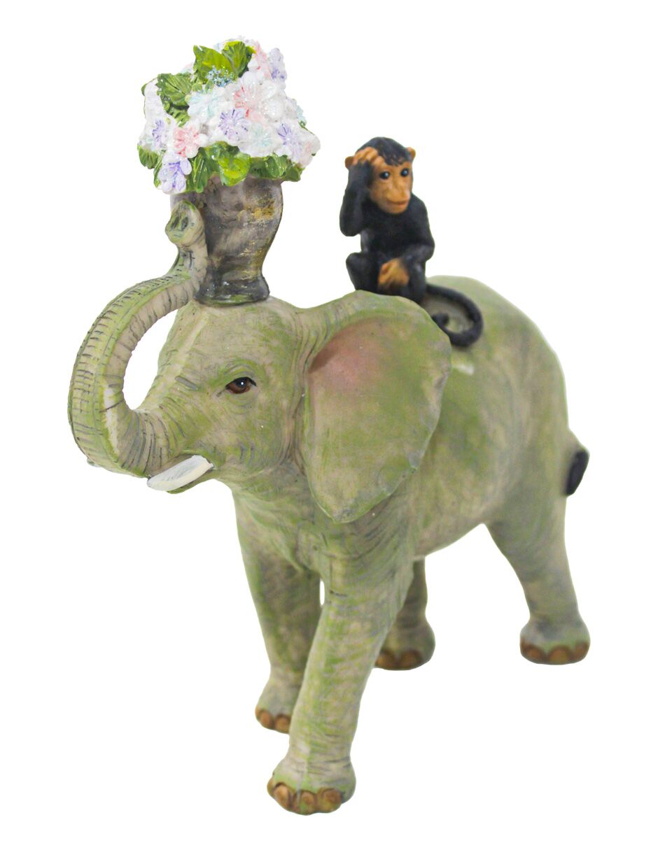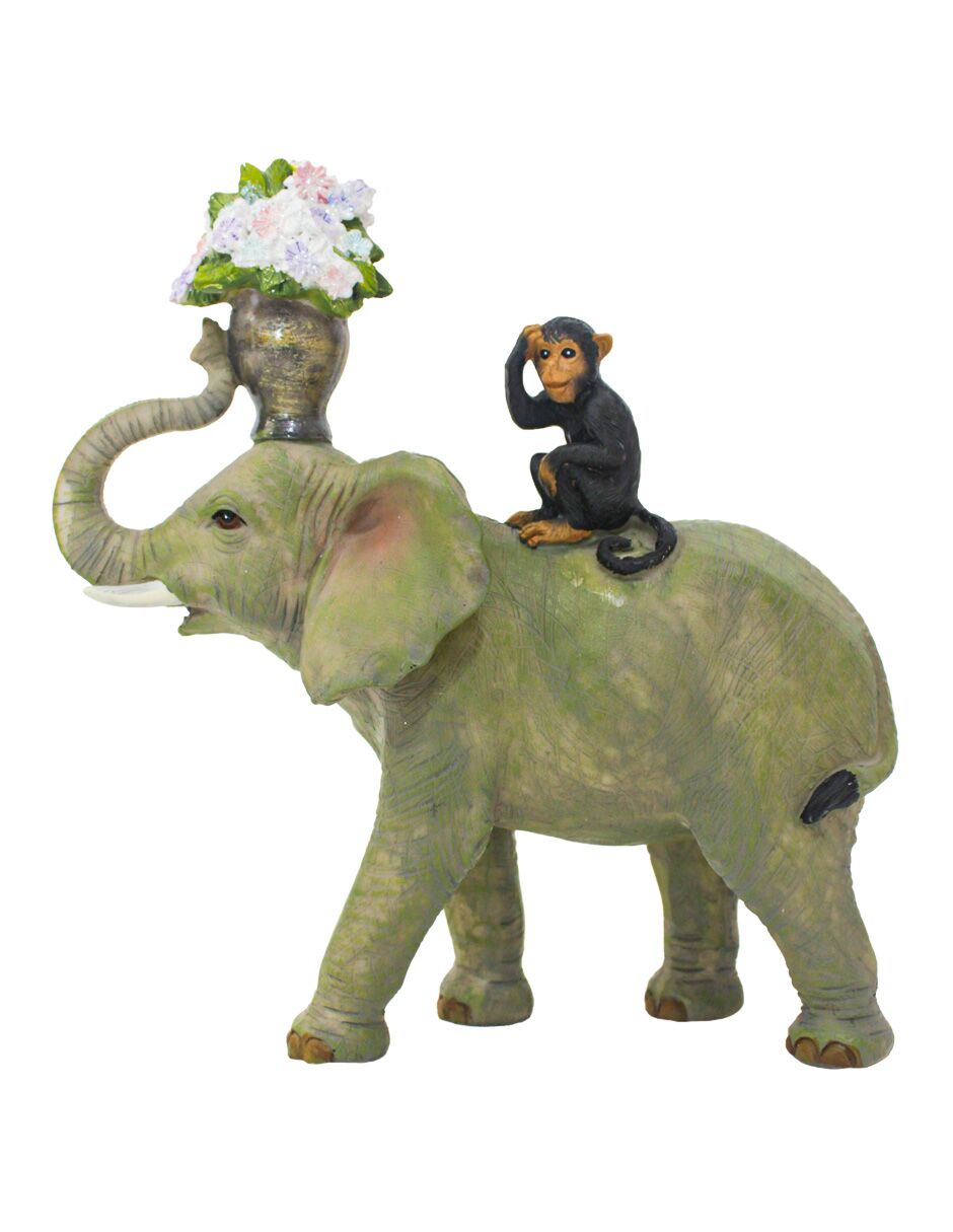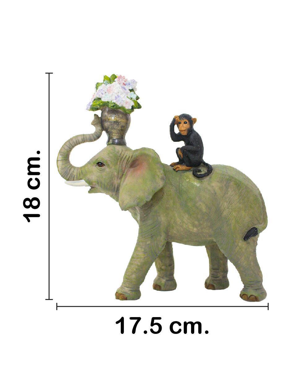 Elefante con chimpancé en la espalda de poliresina de 17.5x7x18cm