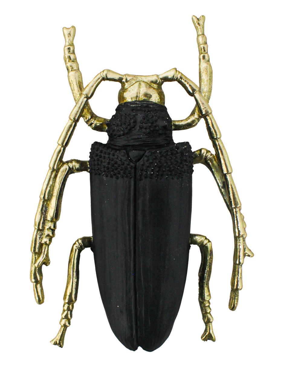 Escarabajo de poliresina negro con dorado de 24.5x17x4cm