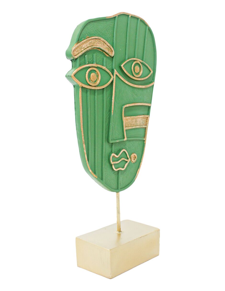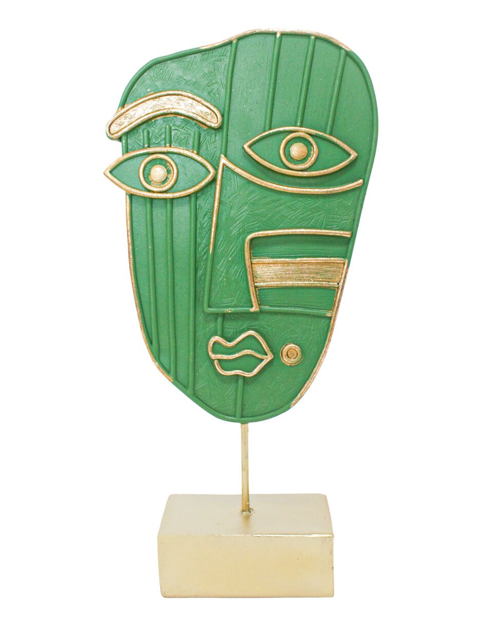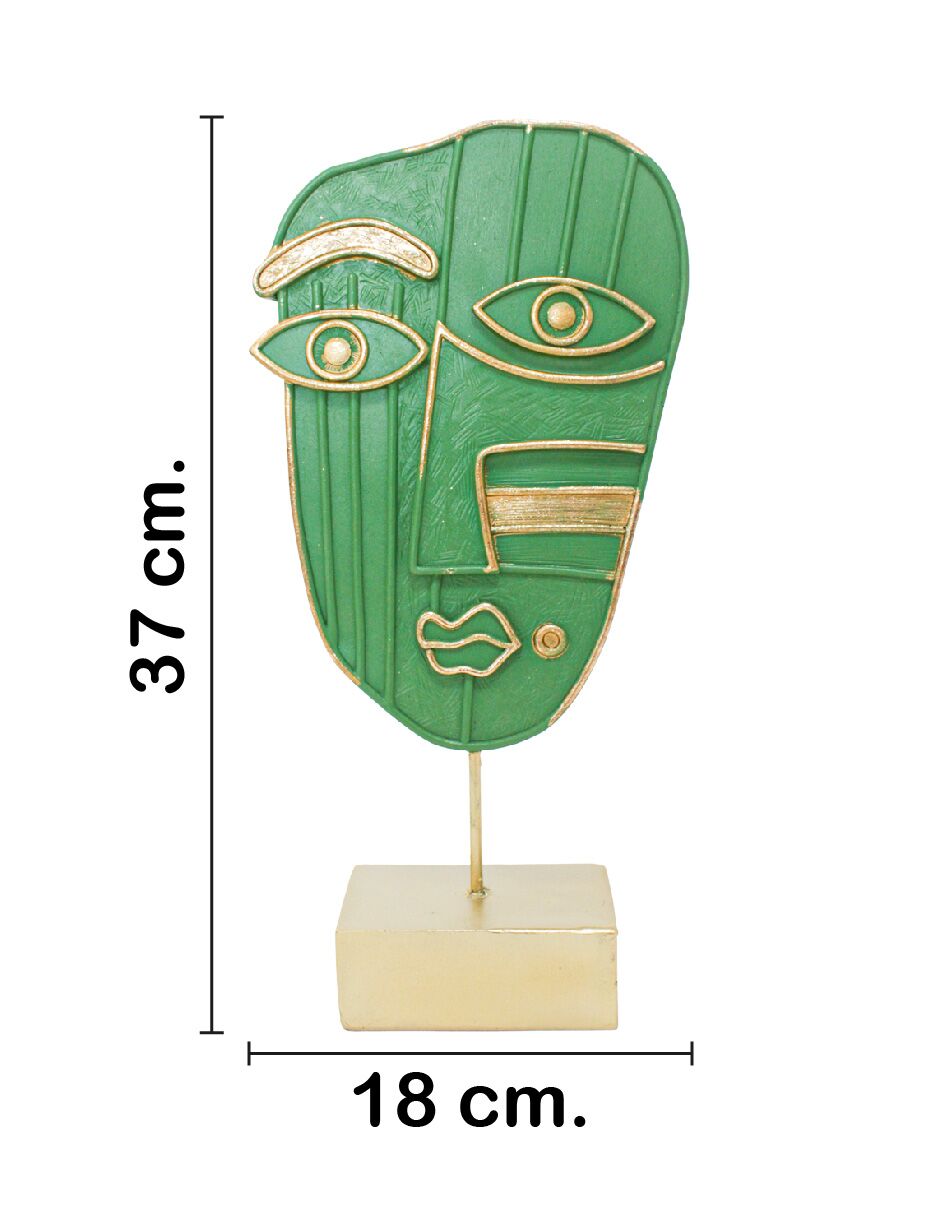 Un toque de modernidad y elegancia para tu hogar. Esta decoración de rostro abstracto es la pieza perfecta para añadir un aire de sofisticación y arte a tu espacio. Con un diseño verde con detalles dorados y un tamaño de 18x7x37cm, su figura detallada crea un ambiente lleno de vida y originalidad, ideal para una repisa, escritorio o un rincón especial.