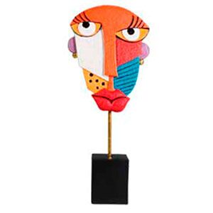 Escultura de rostro de mujer abstracto blanco con azul