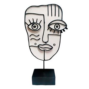 Escultura de rostro de mujer abstracto blanco con negro de 41 cm