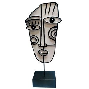 Escultura de rostro de mujer abstracto blanco con negro de 42.5 cm