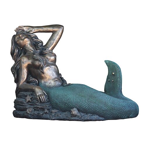 Misticismo y descanso con la Escultura Sirena Recostada sobre Roca