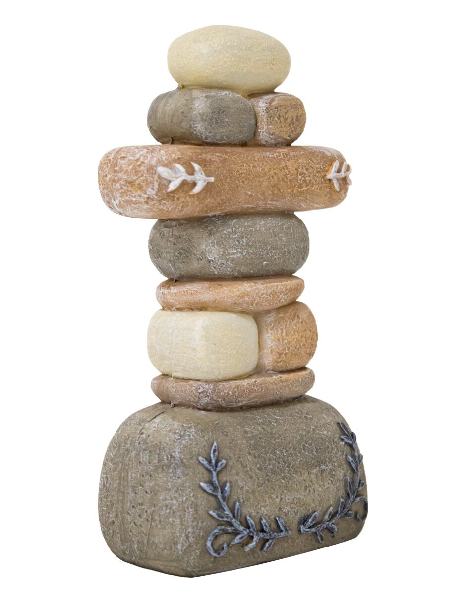 Escultura Rústica Rocas Apiladas. Esta pieza es mucho más que un simple objeto decorativo; es un centro de espiritualidad y equilibrio diseñado para llevar la serenidad de la naturaleza directamente a tu hogar. El diseño destaca por su estructura vertical que emula el apilamiento ancestral de cantos rodados, alternando tonos grises, ocres y arena con texturas orgánicas realistas que incluyen delicados grabados de ramas. Esto proyecta una sensación de paz y estabilidad constante en cualquier rincón zen, estudio o jardín interior. Además, la figura fomenta la paciencia y la concentración al representar la disciplina del equilibrio perfecto entre elementos naturales. Estos elementos crean un entorno de bienestar y calma total. Por ello, integrar este elemento transforma una estancia común en un escenario de lujo visual holístico. Su impacto estético define un estándar de exclusividad único.