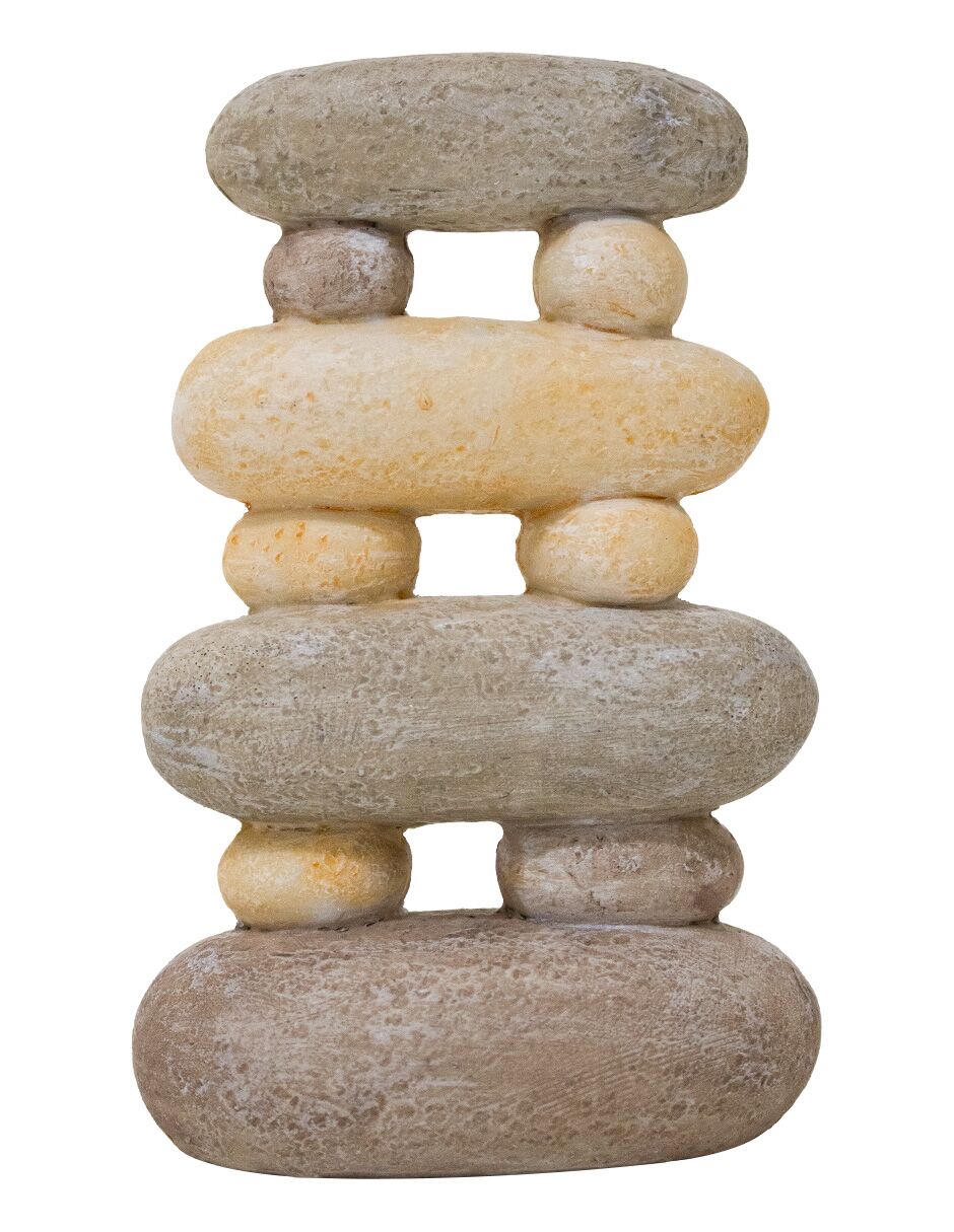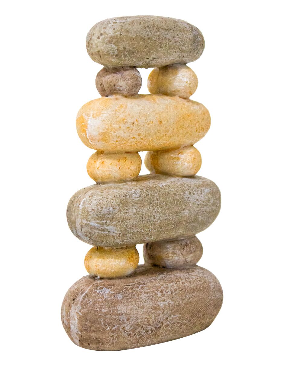 Escultura Tótem Rocas Terrosas Zen. Esta pieza es mucho más que un simple objeto decorativo; es un centro de espiritualidad y equilibrio diseñado para llevar la serenidad de la naturaleza directamente a tu hogar. El diseño destaca por su estructura vertical que emula el apilamiento ancestral de cantos rodados, alternando tonos grises, ocres y arena con texturas orgánicas realistas. Esto proyecta una sensación de paz y estabilidad constante en cualquier rincón zen, estudio o jardín interior. Además, la figura fomenta la paciencia y la concentración al representar la disciplina del equilibrio perfecto. Estos elementos crean un entorno de bienestar y calma total. Por ello, integrar este elemento transforma una estancia común en un escenario de lujo visual holístico. Su impacto estético define un estándar de exclusividad único.