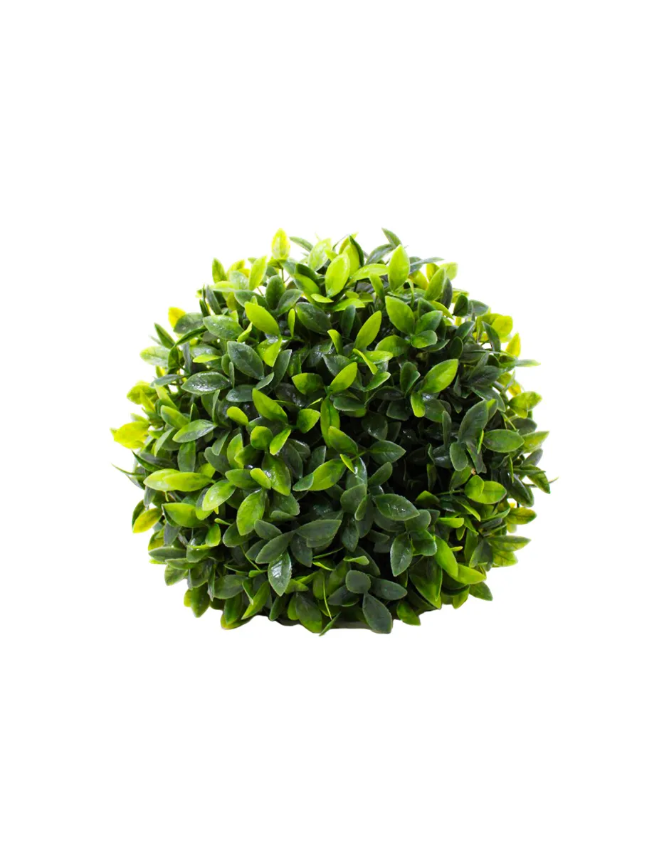 Una versátil esfera de follaje verde artificial que aporta un toque de naturaleza y frescura a cualquier espacio. Es ideal para decorar interiores o jardines, sin necesidad de cuidados. Material: Plástico. Medidas: 25cm.