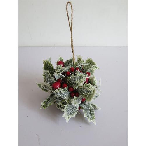 Una festiva esfera de pick nevado con berries rojos. Es ideal para dar un toque invernal y alegre a tus decoraciones navideñas, llenando cualquier espacio de un estilo único y festivo. Material: plástico. Medidas: 20 cm.