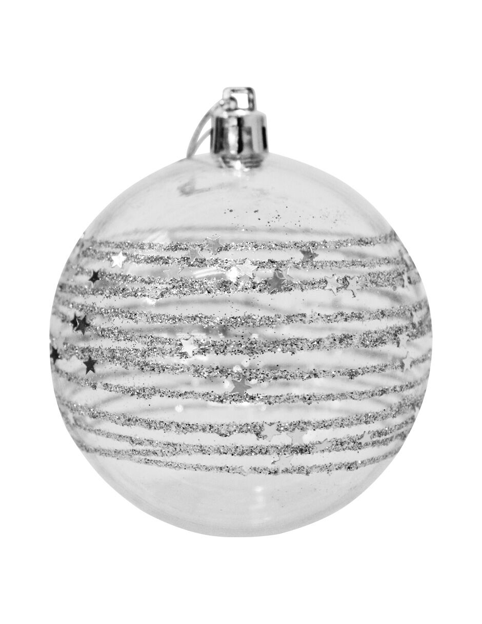 Esfera de plástico transparente con diamantina plateada de 8cm
