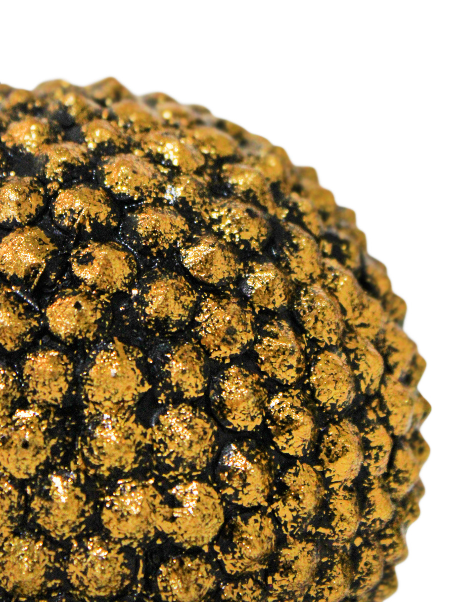 Esfera de poliresina a cuadros dorada de 9x9x9cm