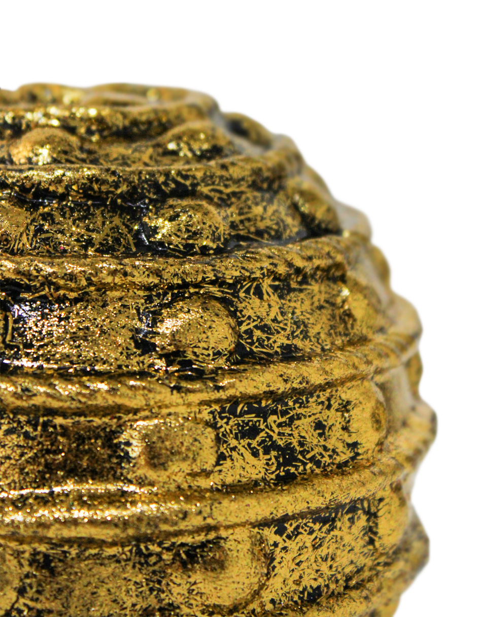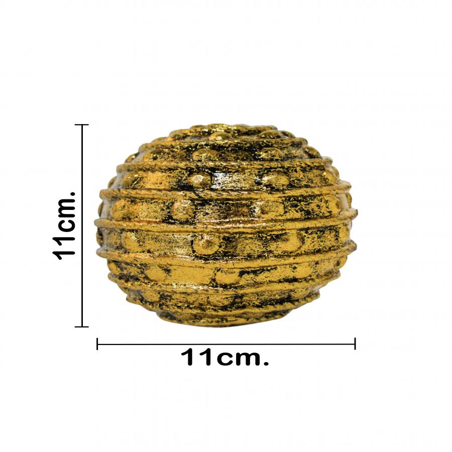 Esfera de poliresina con rayas y puntos dorada de 10x10x10cm
