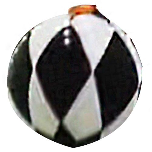 Esfera de plástico con llamativo diseño de arlequín en blanco y negro, con acabado diamantado. Ideal para un estilo dramático y elegante.